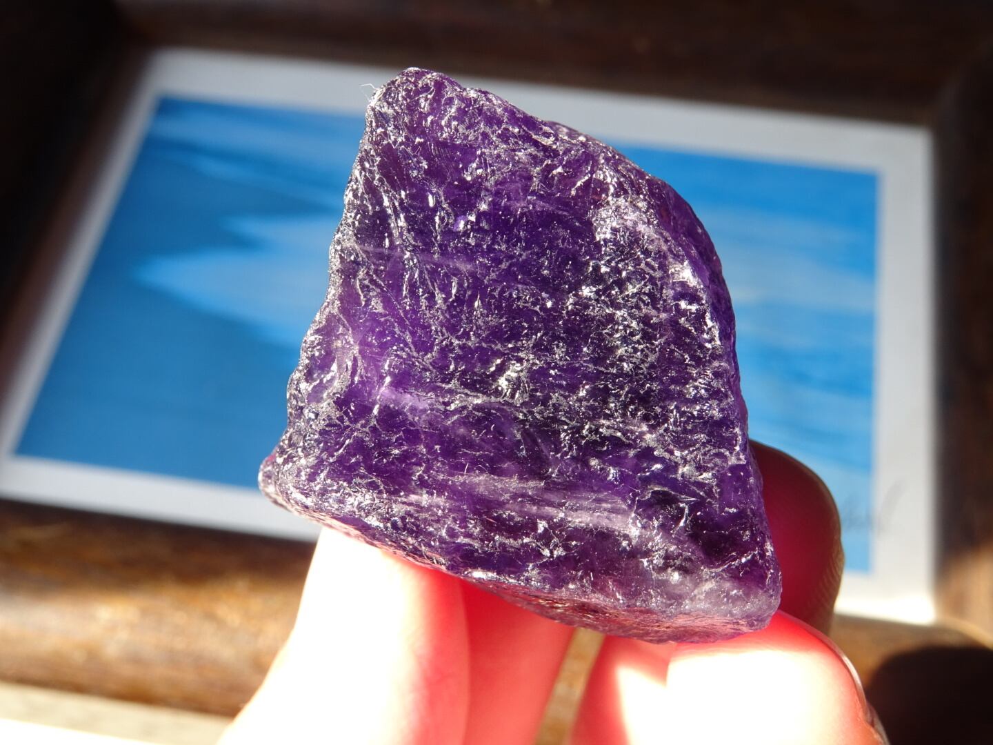 とても珍しいルワンダ産アメジスト。濃いめのパープルが特徴で、光に透かすと非常に美しい紫の世界を魅せてくれます。
