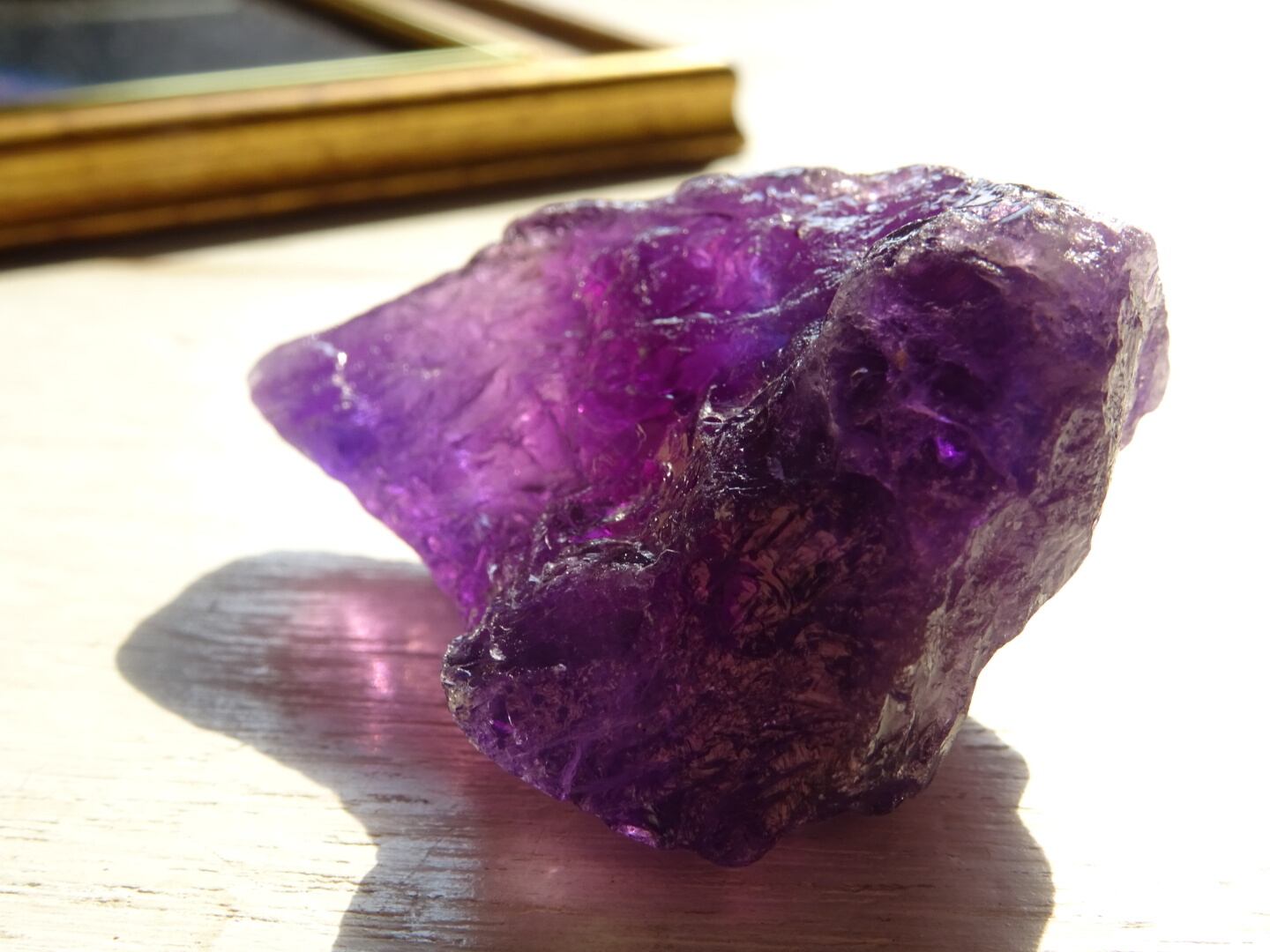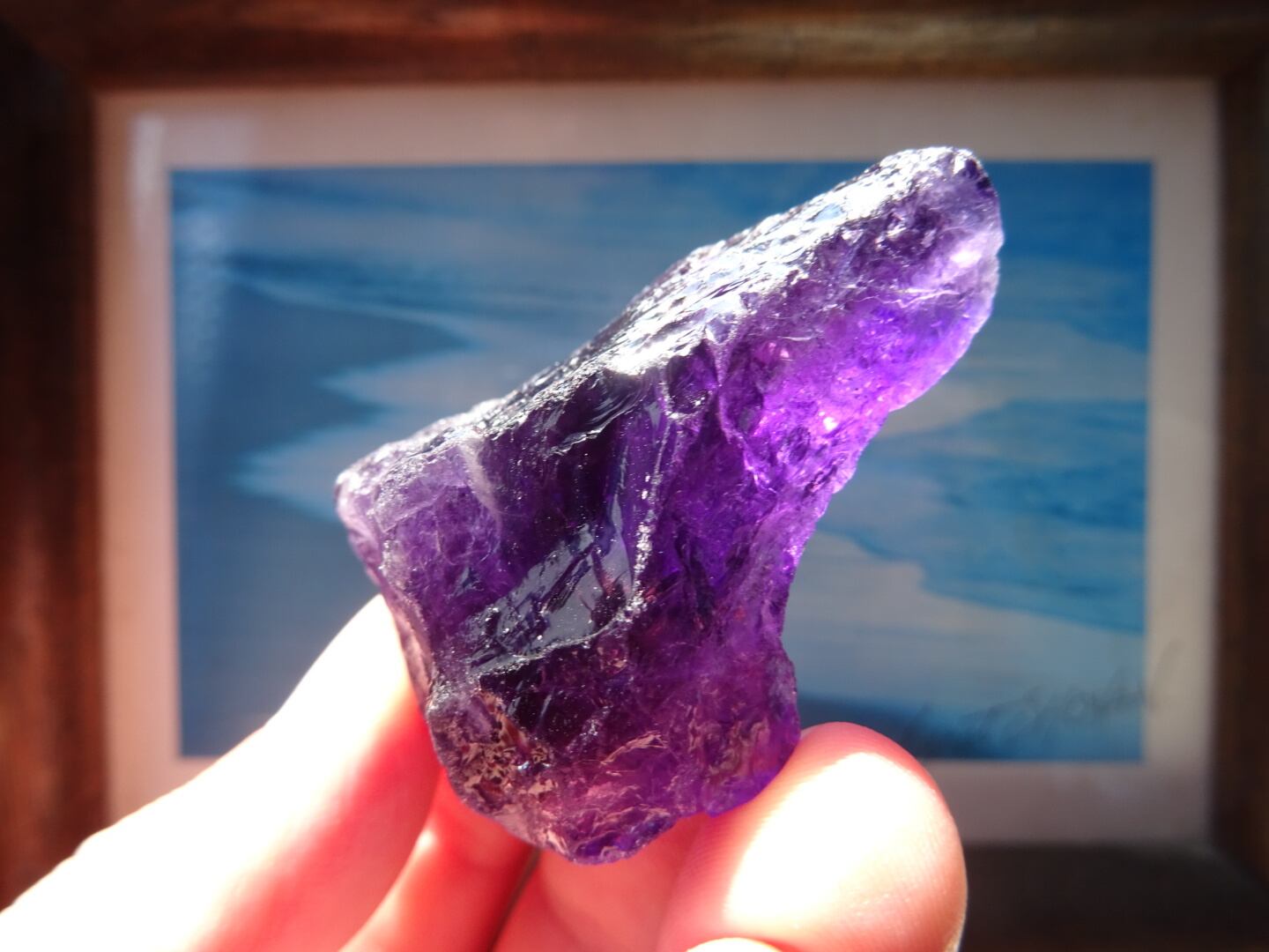 とても珍しいルワンダ産アメジスト。濃いめのパープルが特徴で、光に透かすと非常に美しい紫の世界を魅せてくれます。