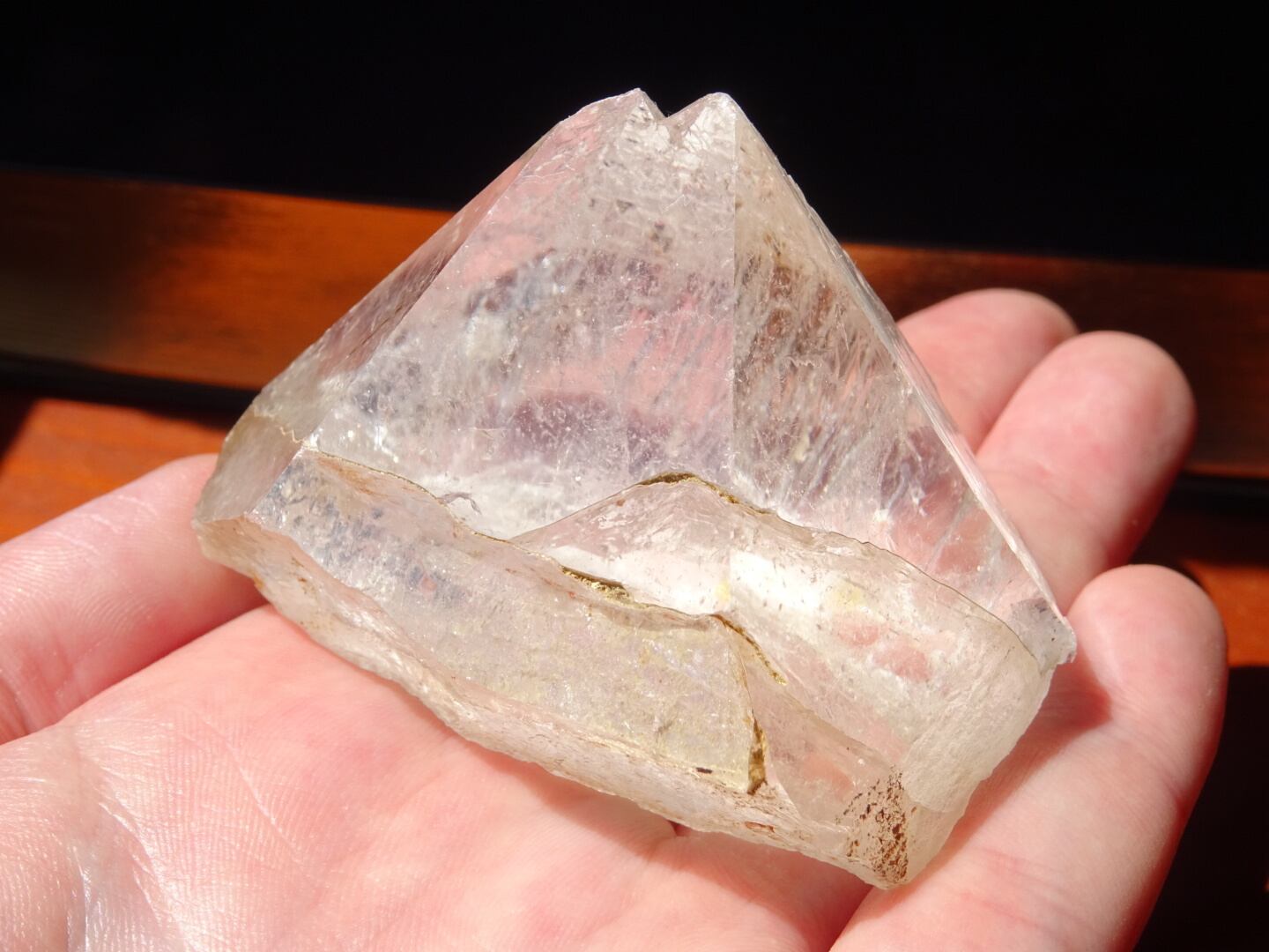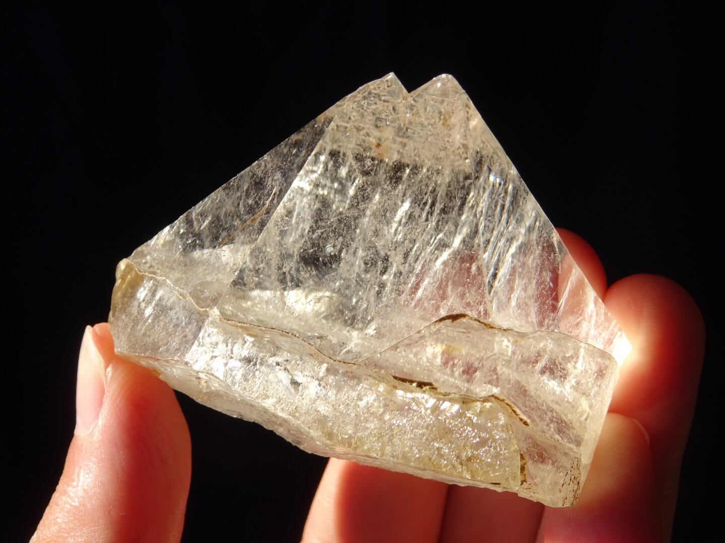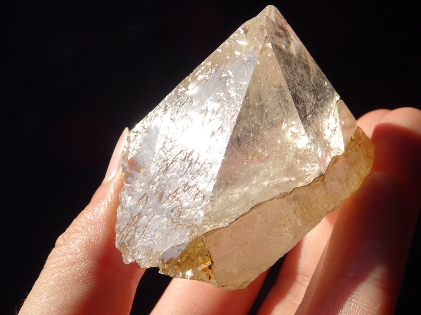こういったフォルムの結晶自体とてもレアだと思います。柱面がなくファセットのみで形成された結晶。そして意味ありげに2つに分かれているトップ。すべてが神秘的で、古代の何かがリアルに迫ってきそうな、古くもあり、ちょっと宇宙的でもある素敵なクリスタルです。