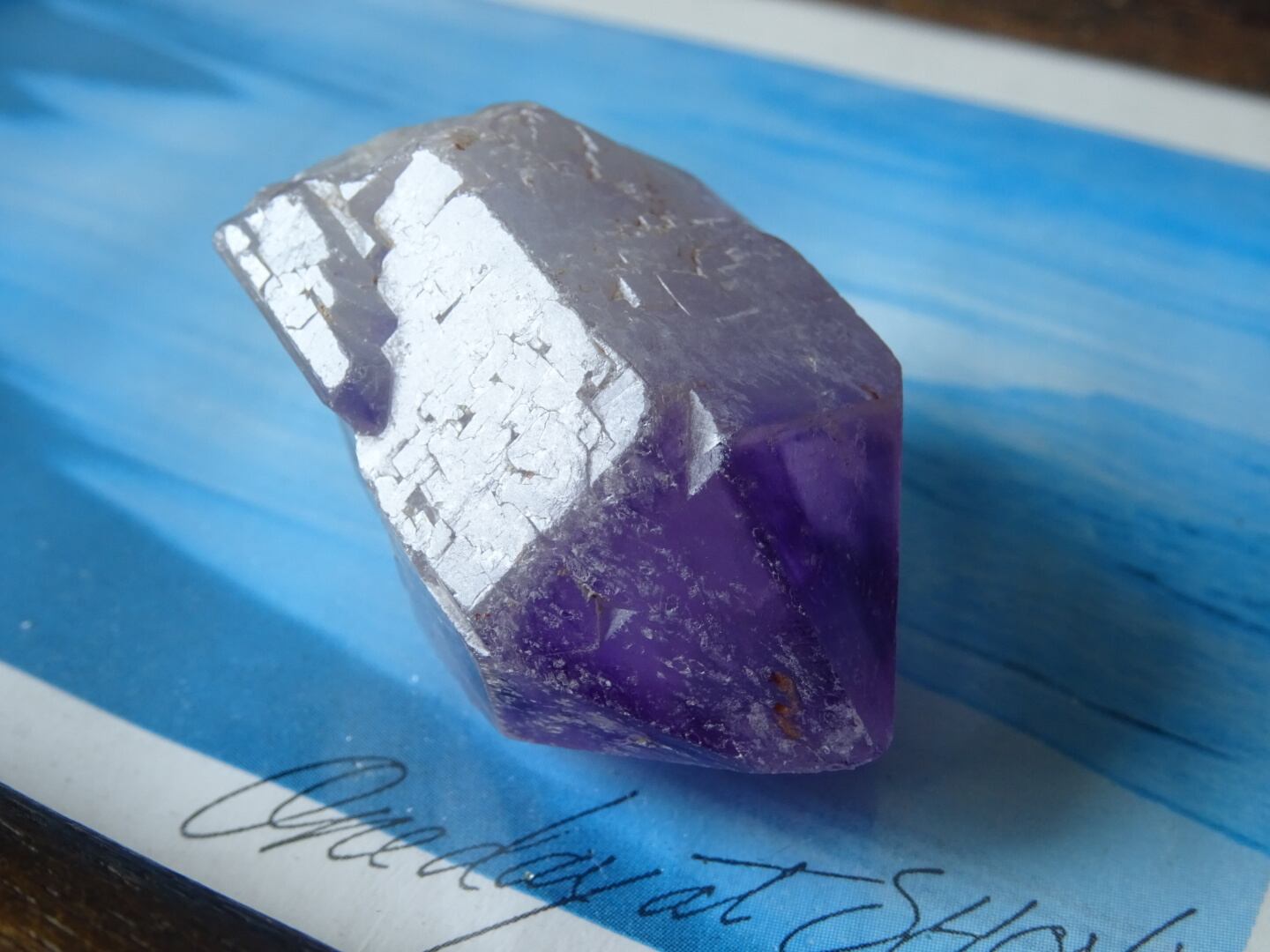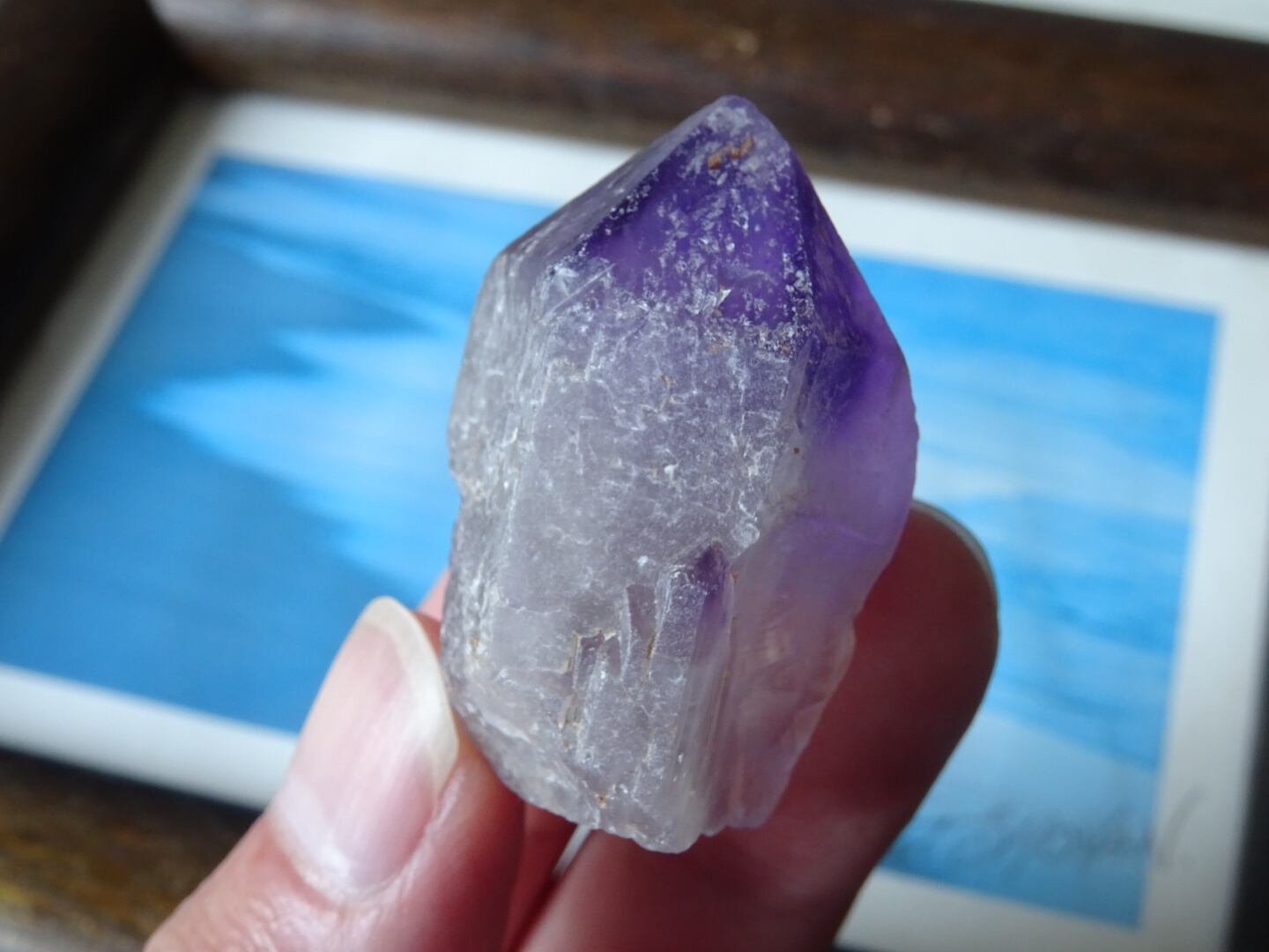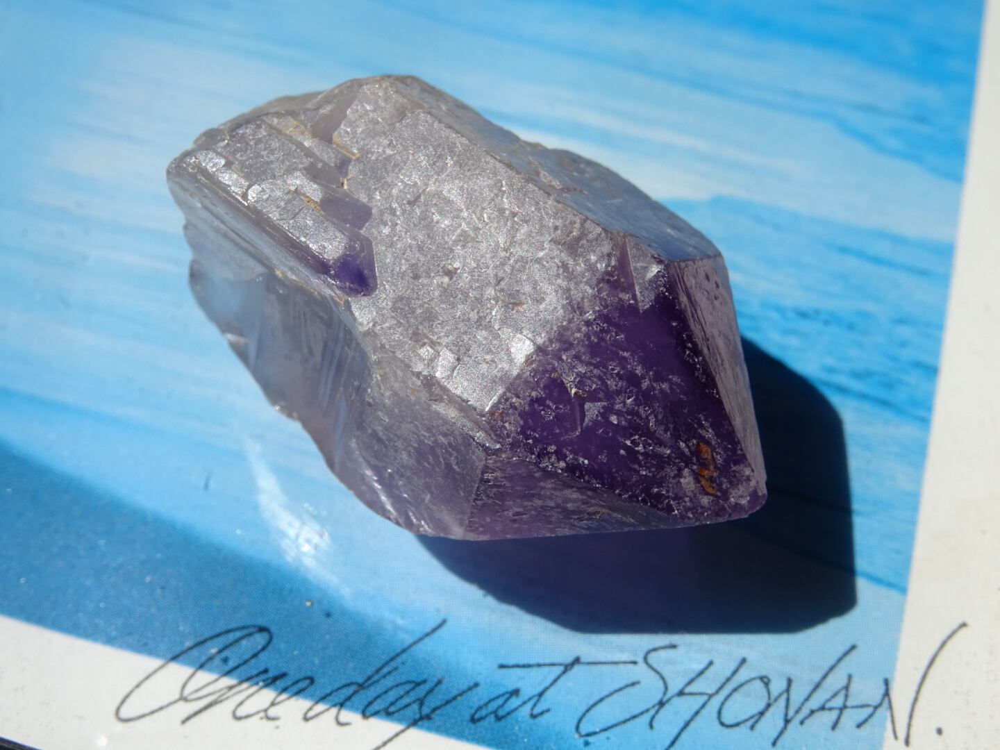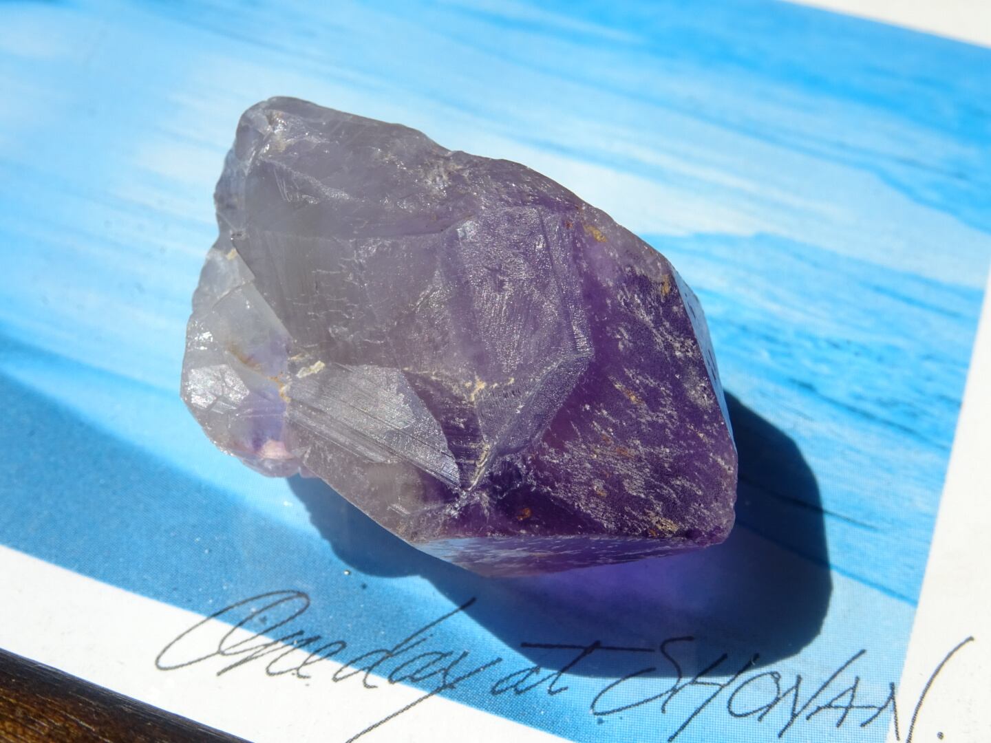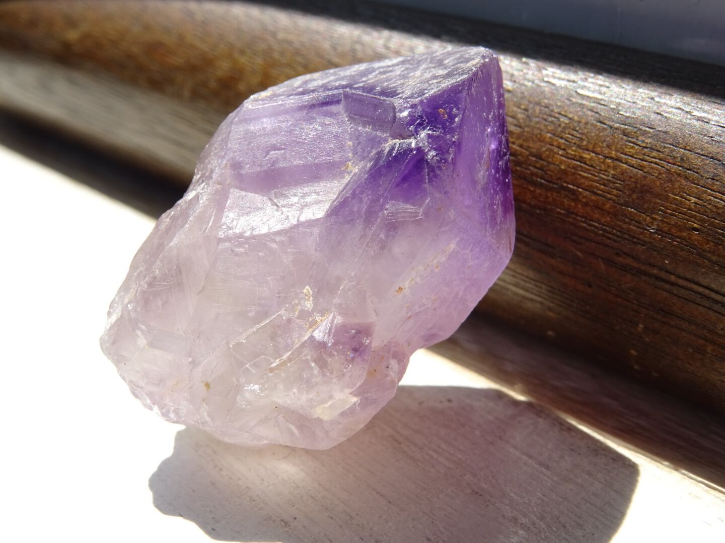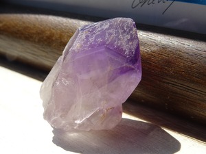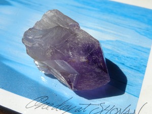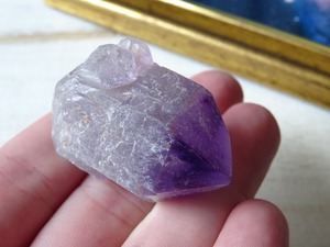 店主の好きな産地カルールのアメジスト。こちらはとにかく、とにかく可愛いです…くびれている部分もありますが、無条件に愛でたくなるフォルムをしています。クリアな部分とパープルの濃淡、グラデーションも美しく、小さな可愛い宝物アメジストです。カルールという産地もおススメ。