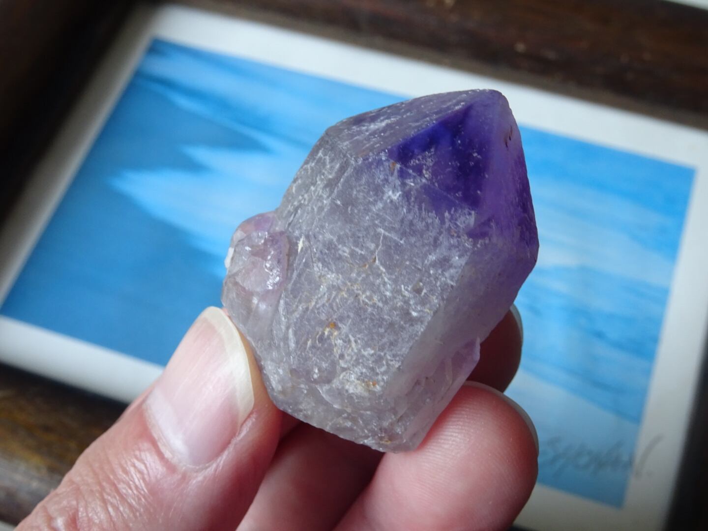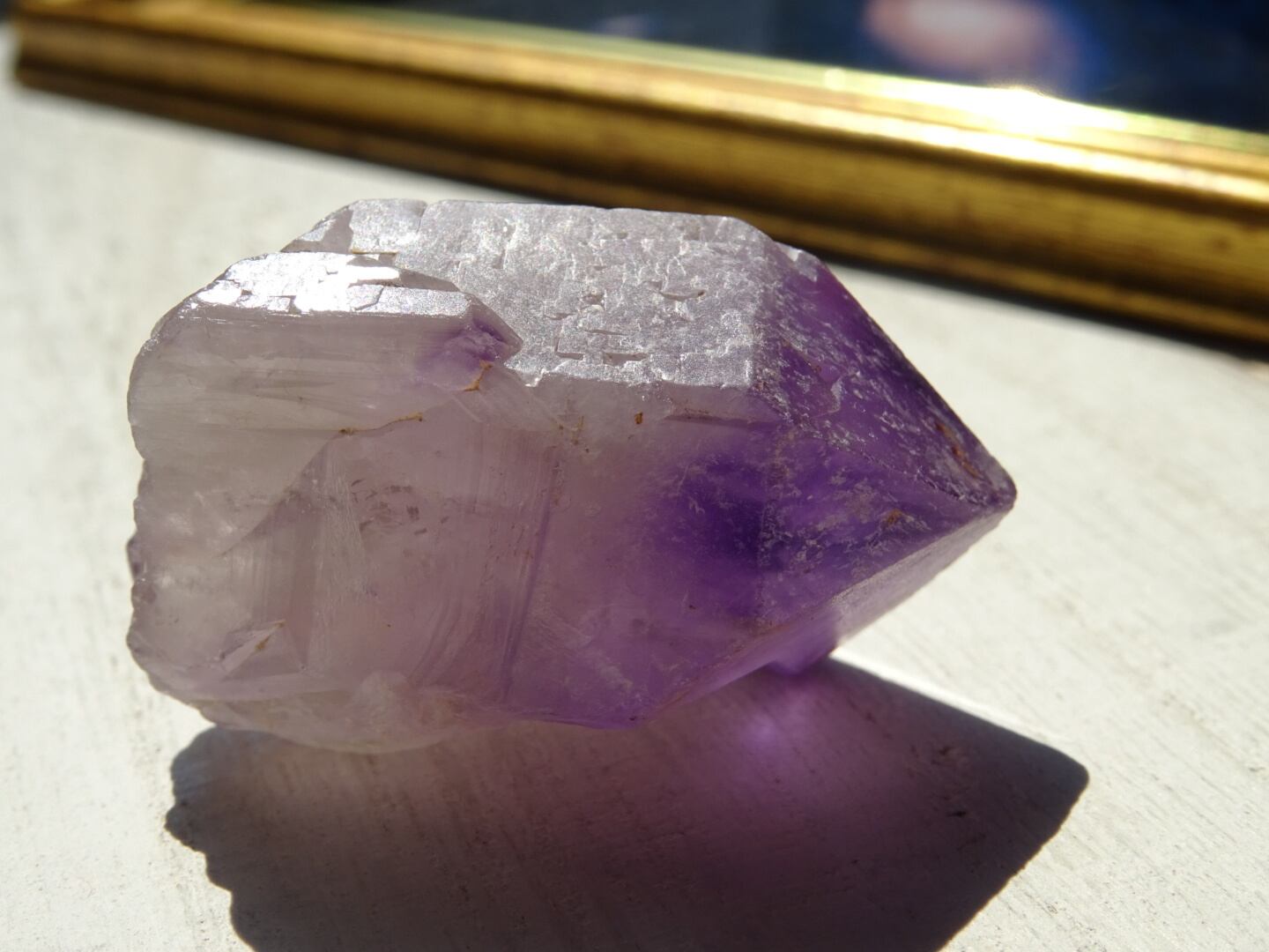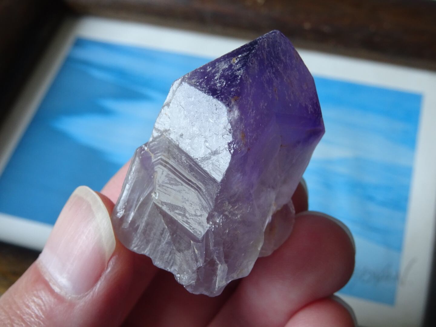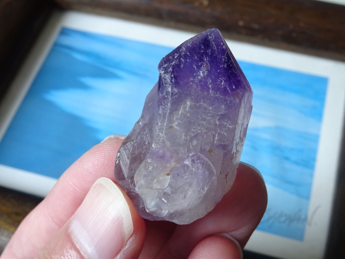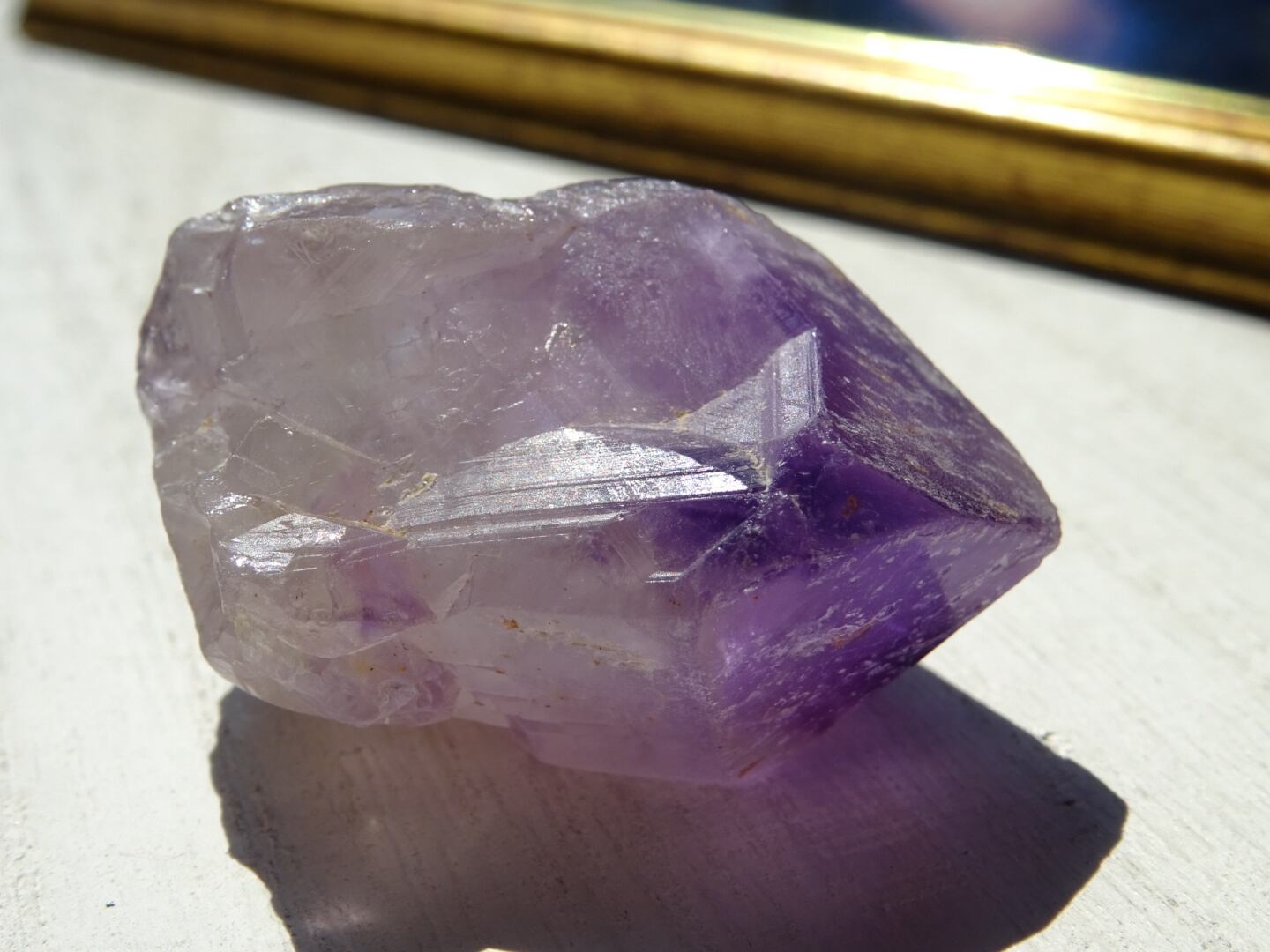 店主の好きな産地カルールのアメジスト。こちらはとにかく、とにかく可愛いです…くびれている部分もありますが、無条件に愛でたくなるフォルムをしています。クリアな部分とパープルの濃淡、グラデーションも美しく、小さな可愛い宝物アメジストです。カルールという産地もおススメ。