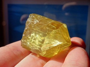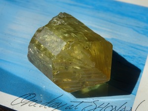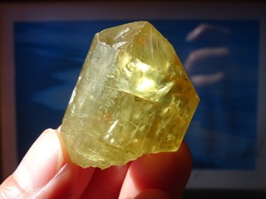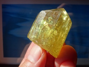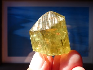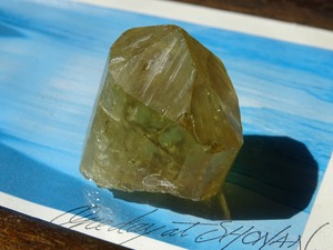 イエローゴールドの輝きが美しいアパタイトの結晶。