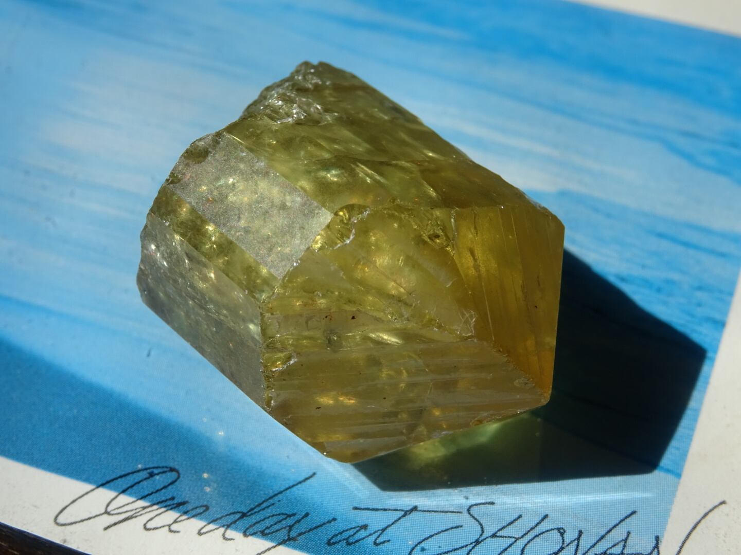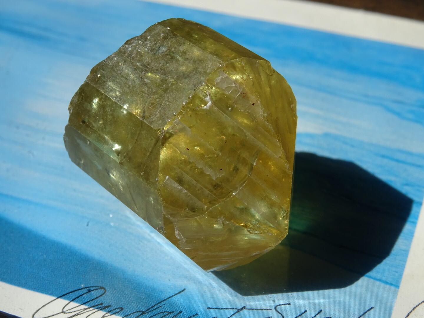 本当に、見惚れてしまう美しさをもったこのアパタイト。写真では上手く映せず残念なのですが、何よりも内側のイエローの世界、その反射するつよいきらめきたちに魅入ってしまいます。