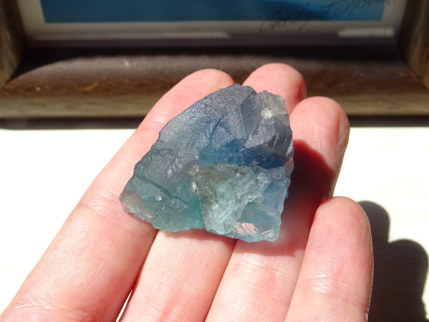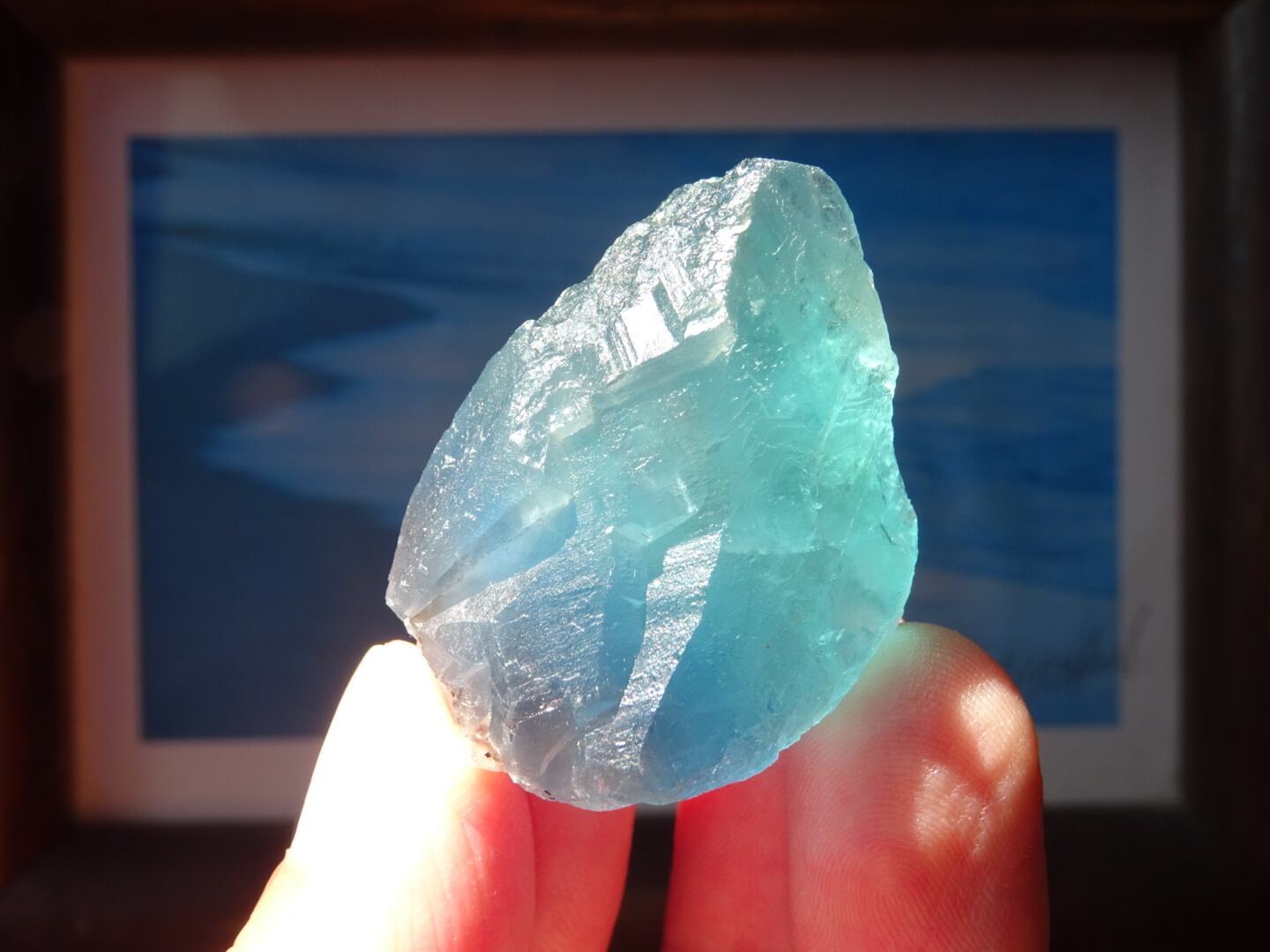童話の森ブラックフォレスト産。まるで静かな水中世界を浮かべたような美しいフローライト。暗所ではより落ちついた色合いに、光に透過するとブルーグリーンの色合いが美しいです。