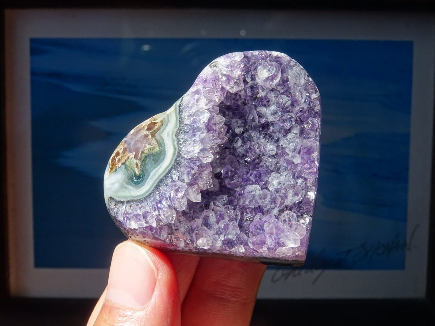 とても可愛いアメジストのハート。惚れこんで2点をお迎えしました。