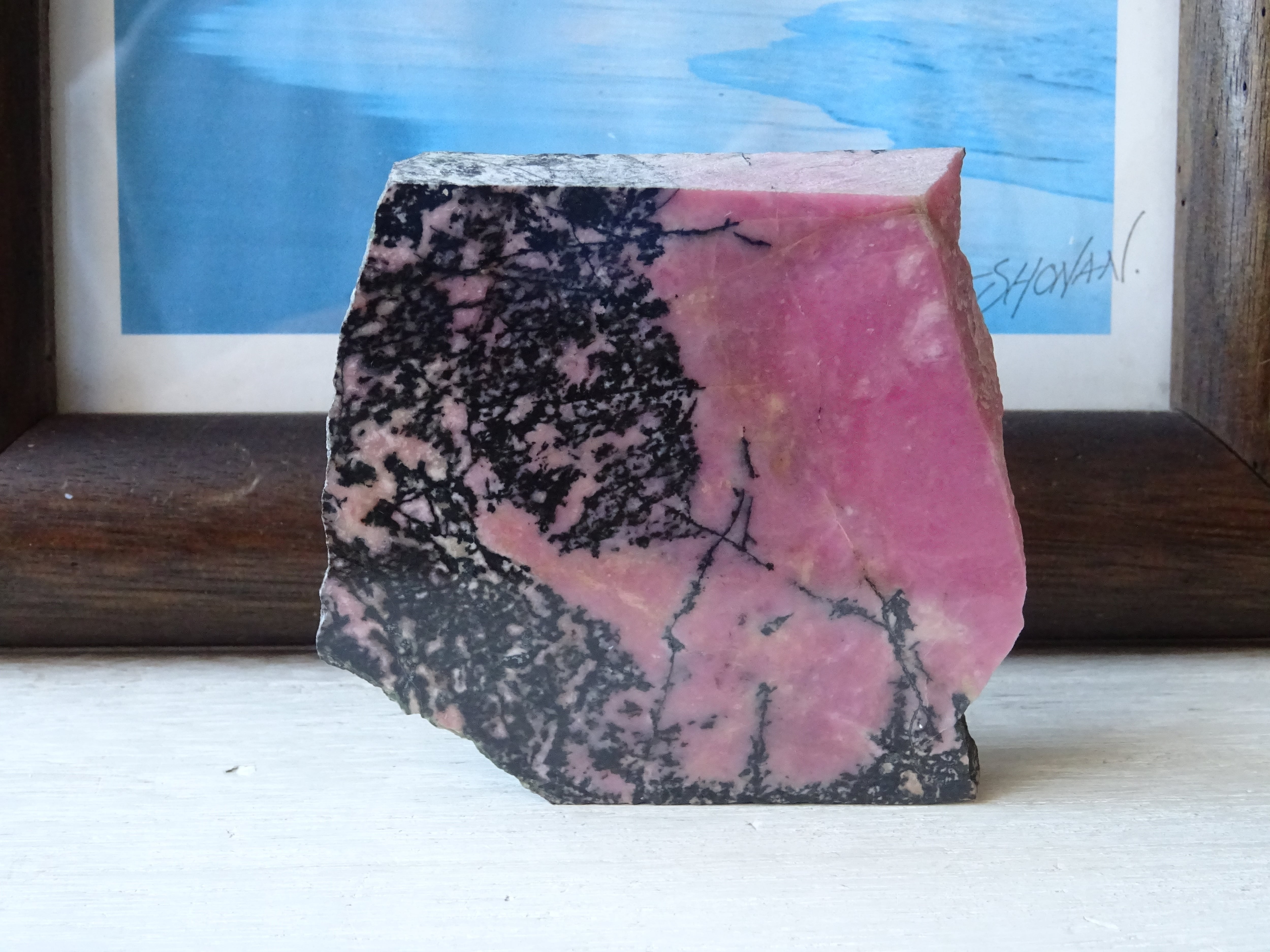 濃いめのピンク~紅色がよく出ているロードナイトの原石。