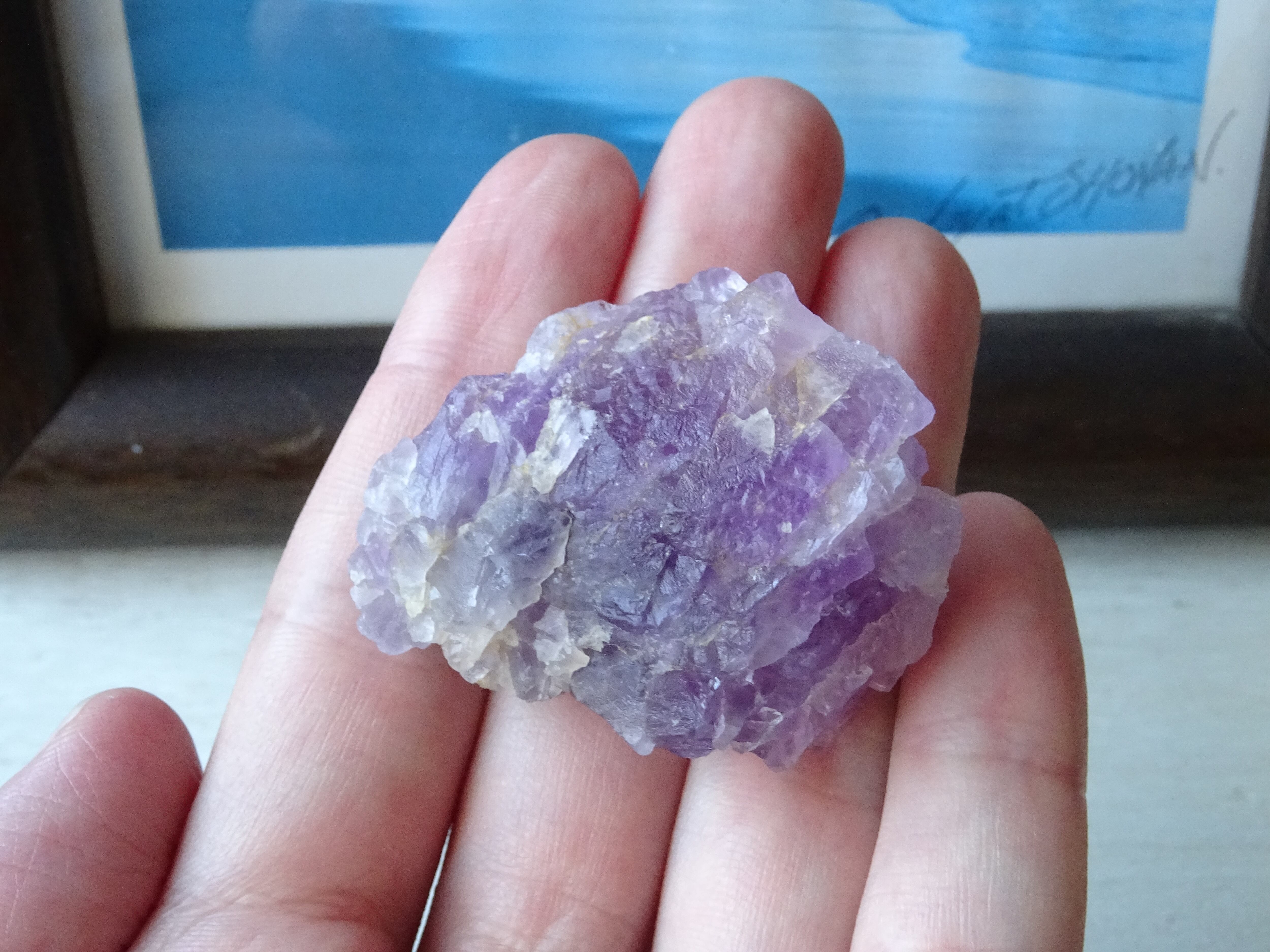 ライラック~ほんのりラベンダーの色合いがほっこり可愛く、フェアリーチックな原石です。愛らしいフローライトの宝物としてどうぞ。
