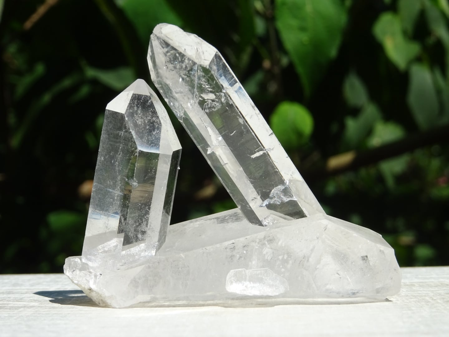美しいレーザークォーツの産地、ディアマンティーナ産のクラスター。ベースとなるクリスタルから寄り添うように2つのクリスタルが結晶しています。