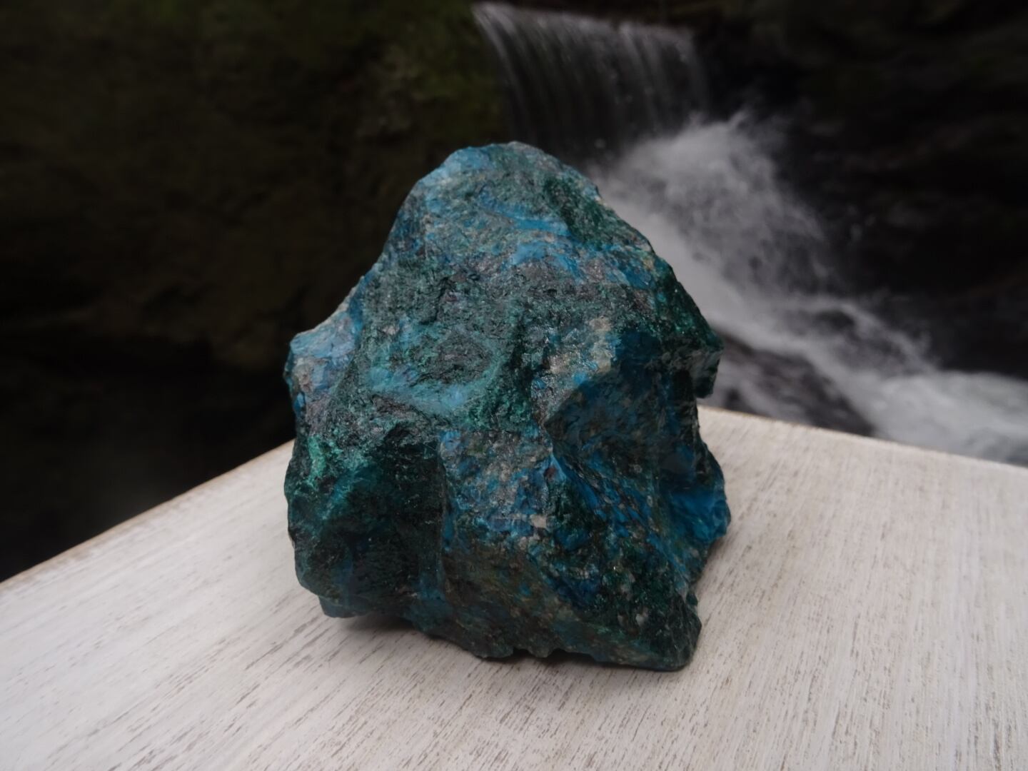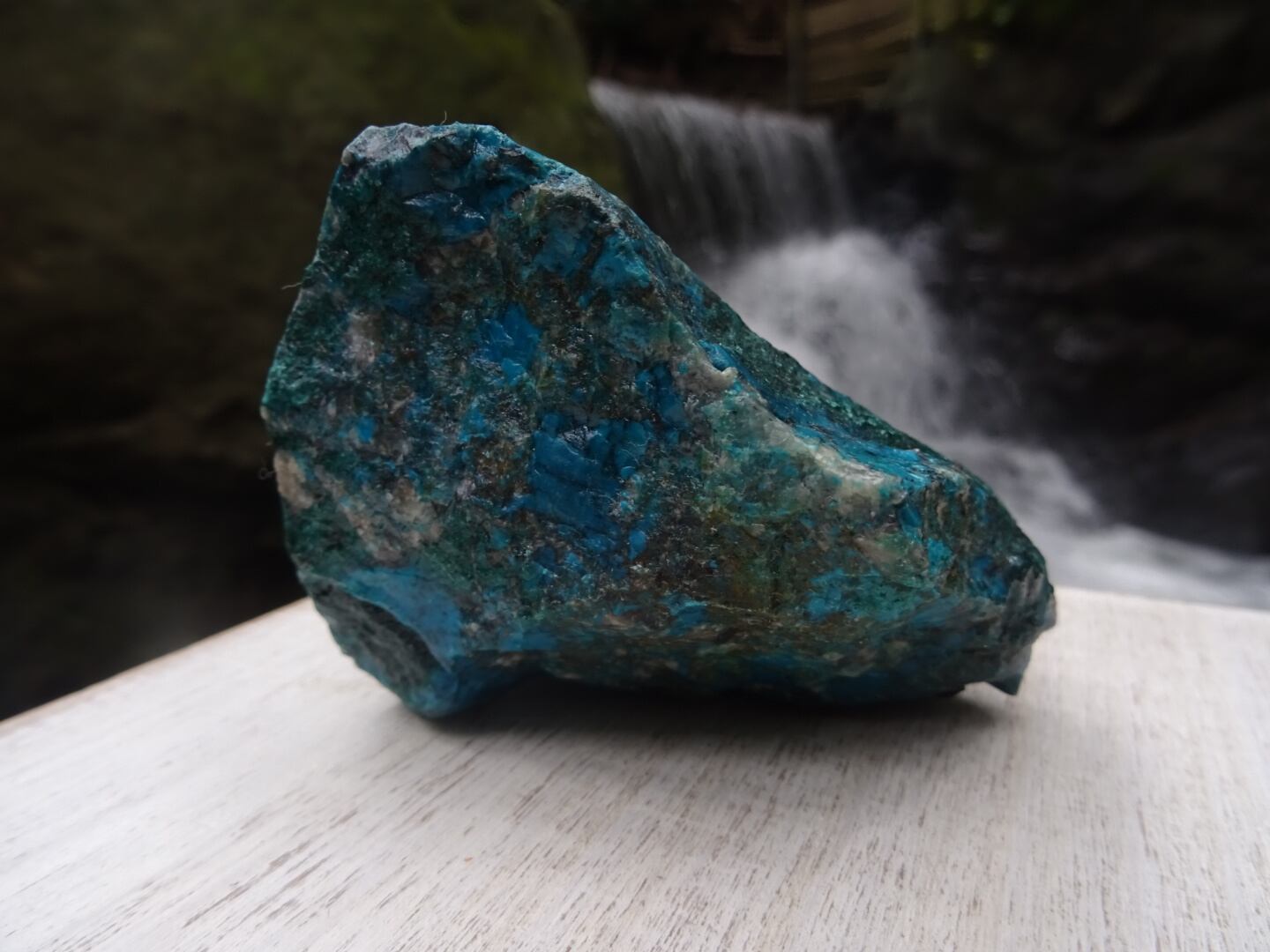 こちらは素朴だけれど美しい存在感のあるクリソコラ。そういえば原石はご紹介したことがなかったな、というのと、何より美しいブルーグリーンに惹かれました。