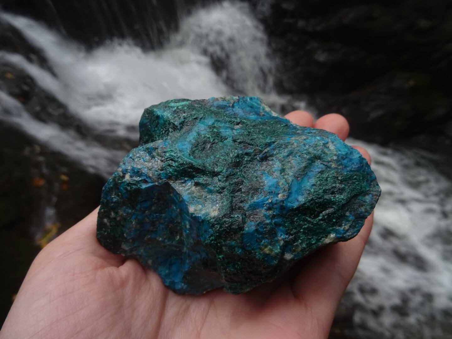 アズライトのブルーとマラカイトのグリーンが綺麗に調和したクリソコラの原石。