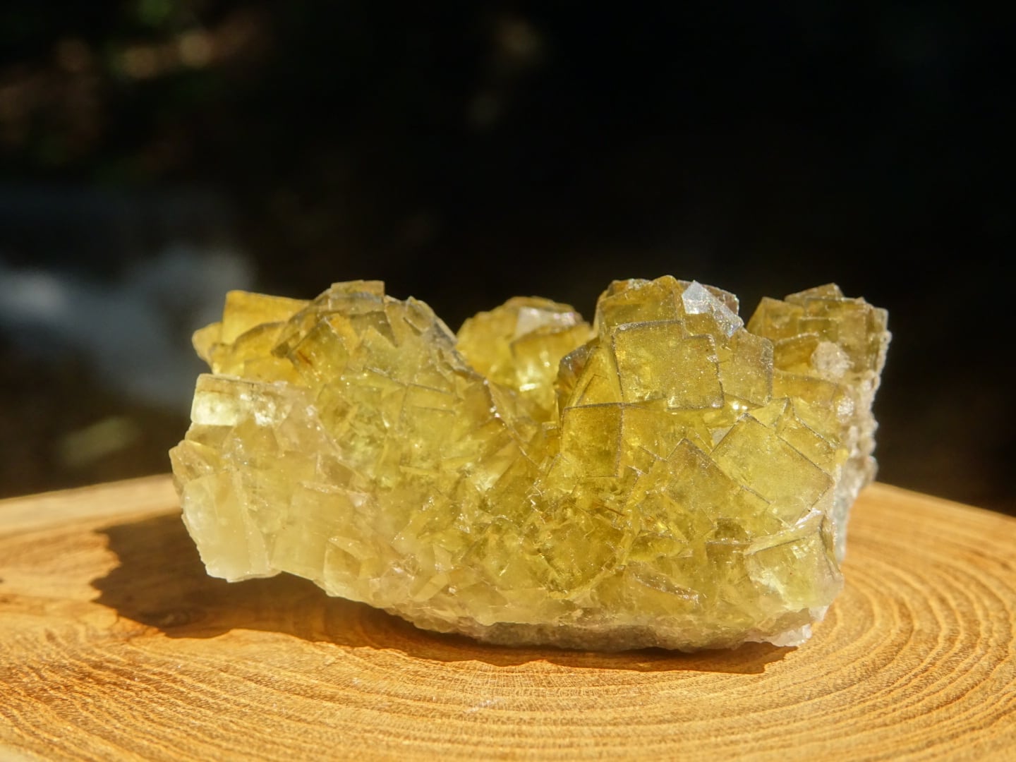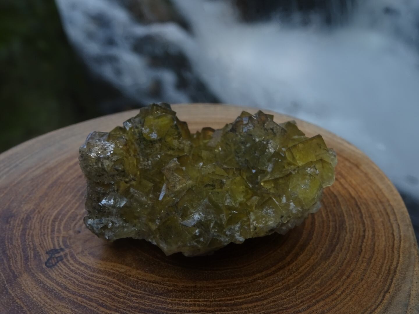 ちょっとしたコーナーやテーブルの上にも。石のある暮らしの彩りとなる、お洒落な黄色のフローライトです。