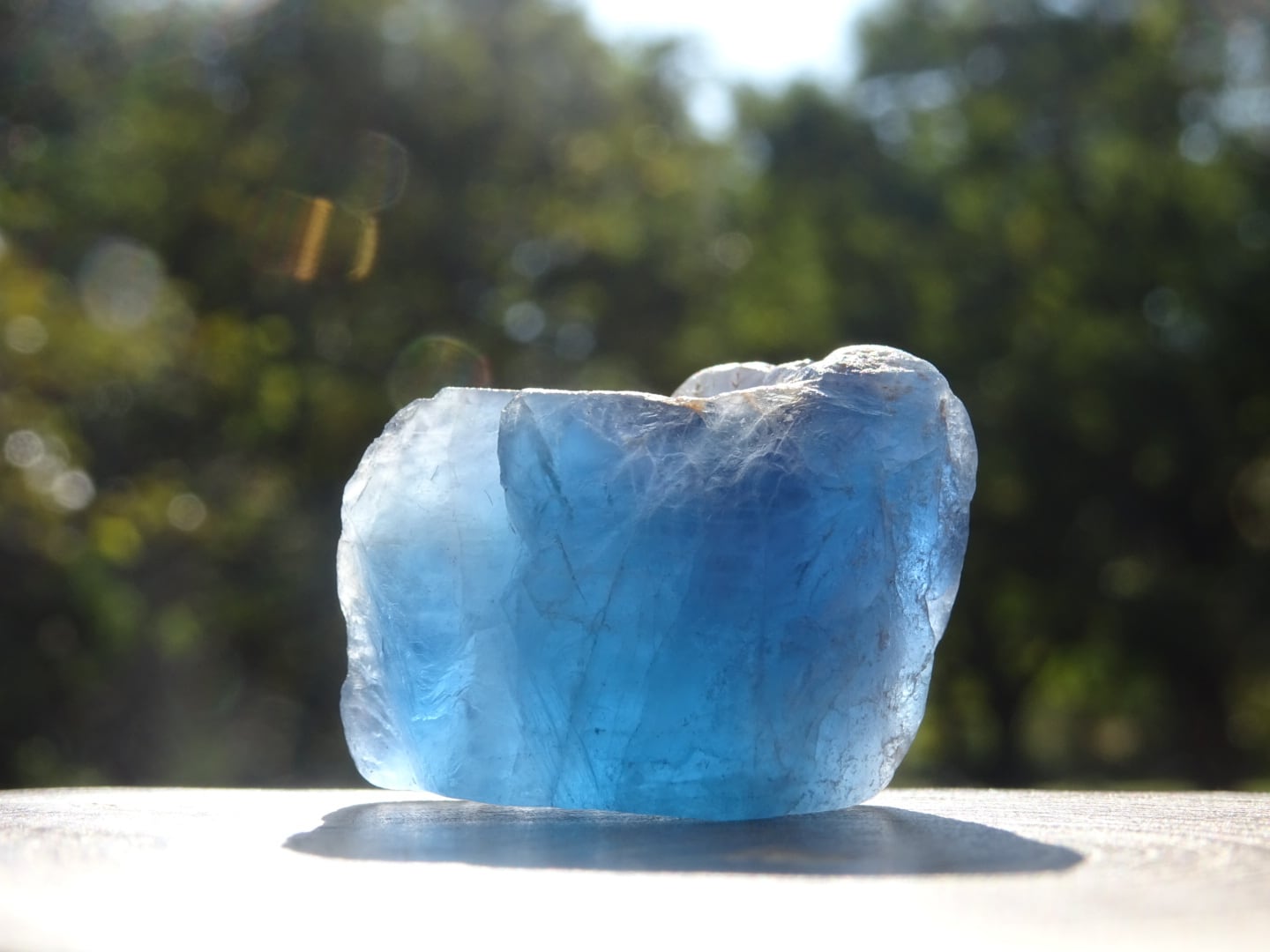 そのままだと紺色のディープブルー、そして光源によって見せてくれる様々なブルーの世界がただただ美しいです。小さな原石ですが、宝物のような魅力の詰まった石。マットでツルツルの質感もグッドです。