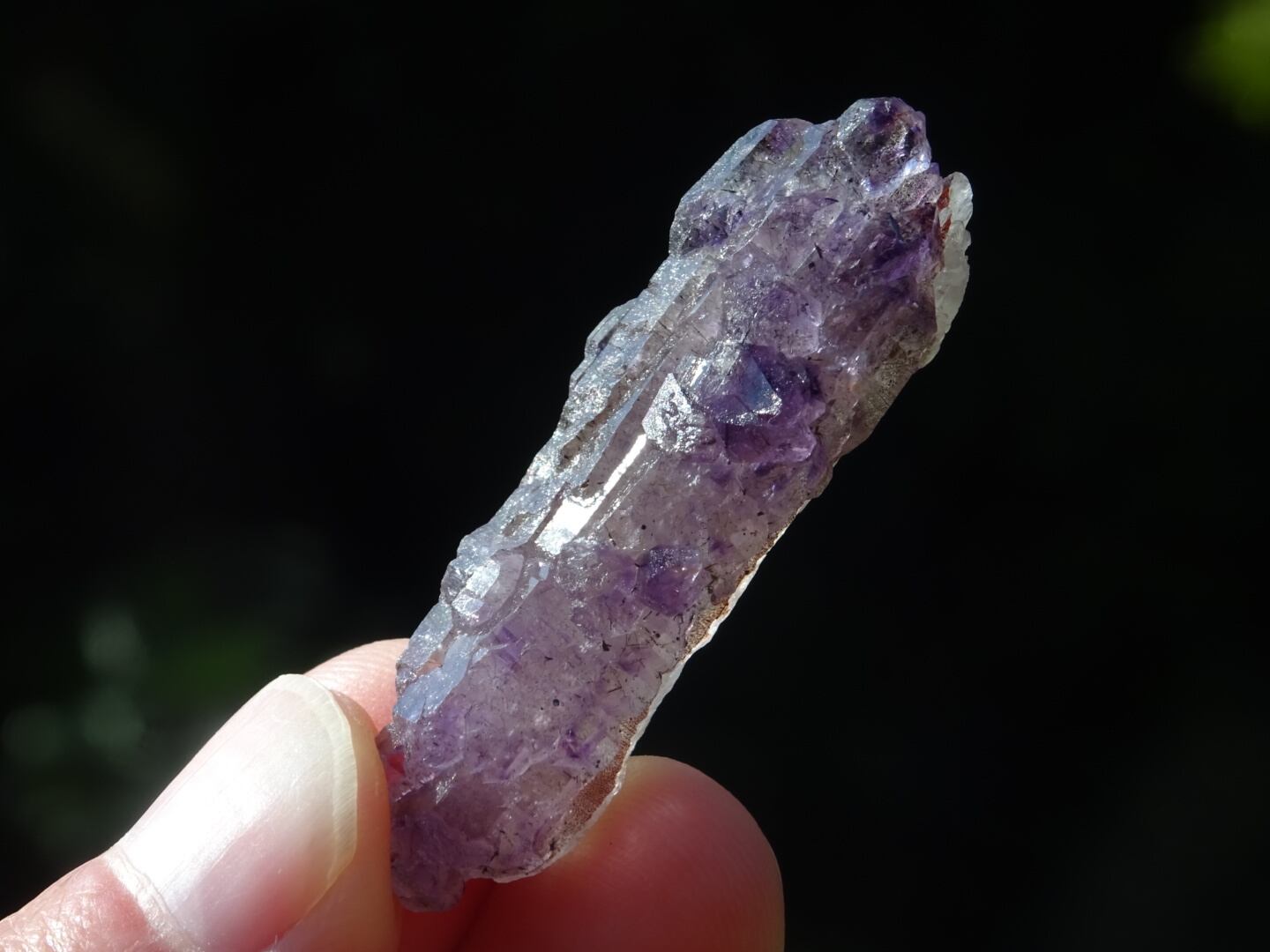 こちらはミニサイズですが美しいジャカレーに結晶しており、反射するその光のシルエットが美しいです。ダブルターミネータータイプで「紫色の小舟」のような素敵なフォルムをしています。