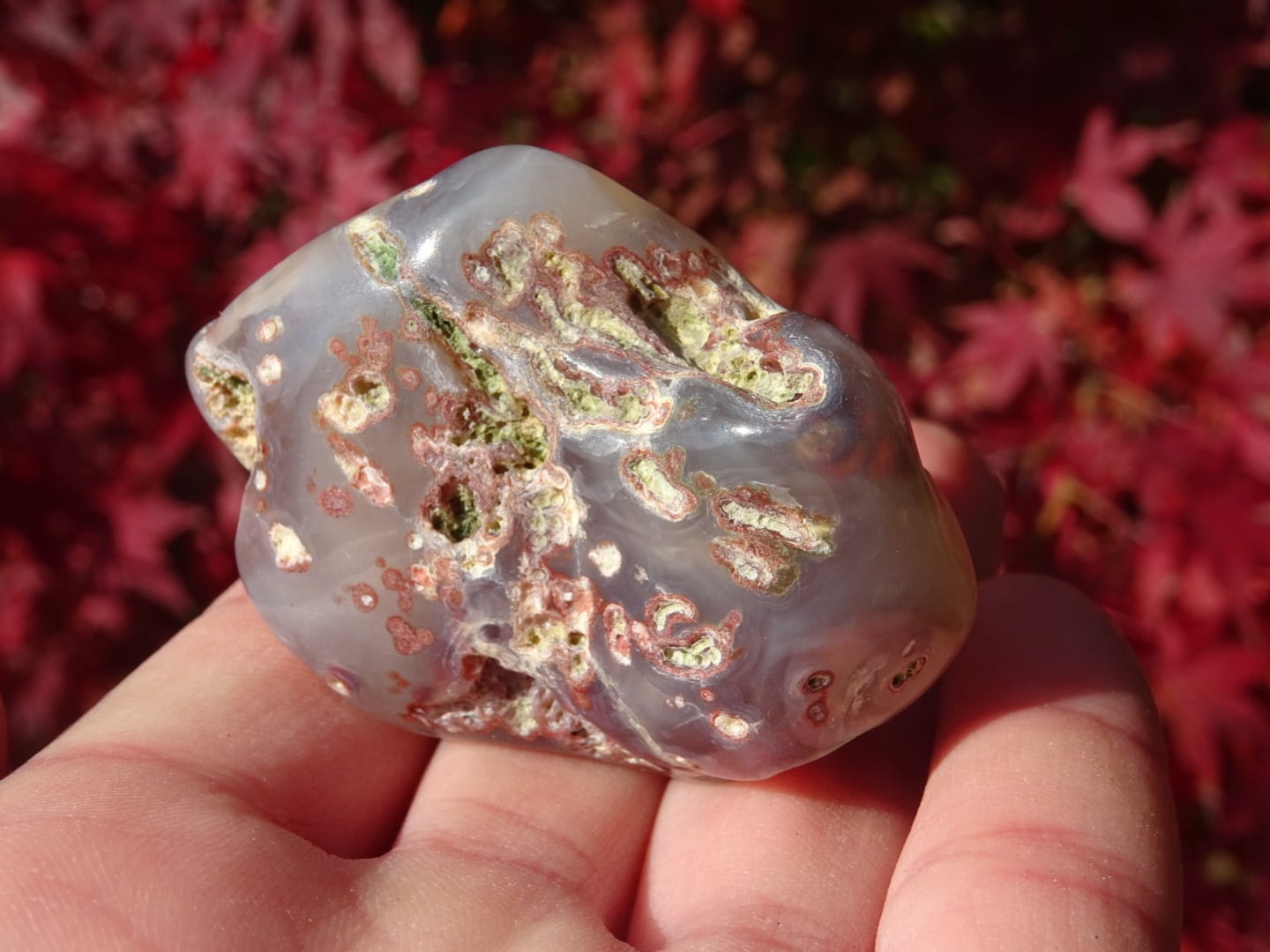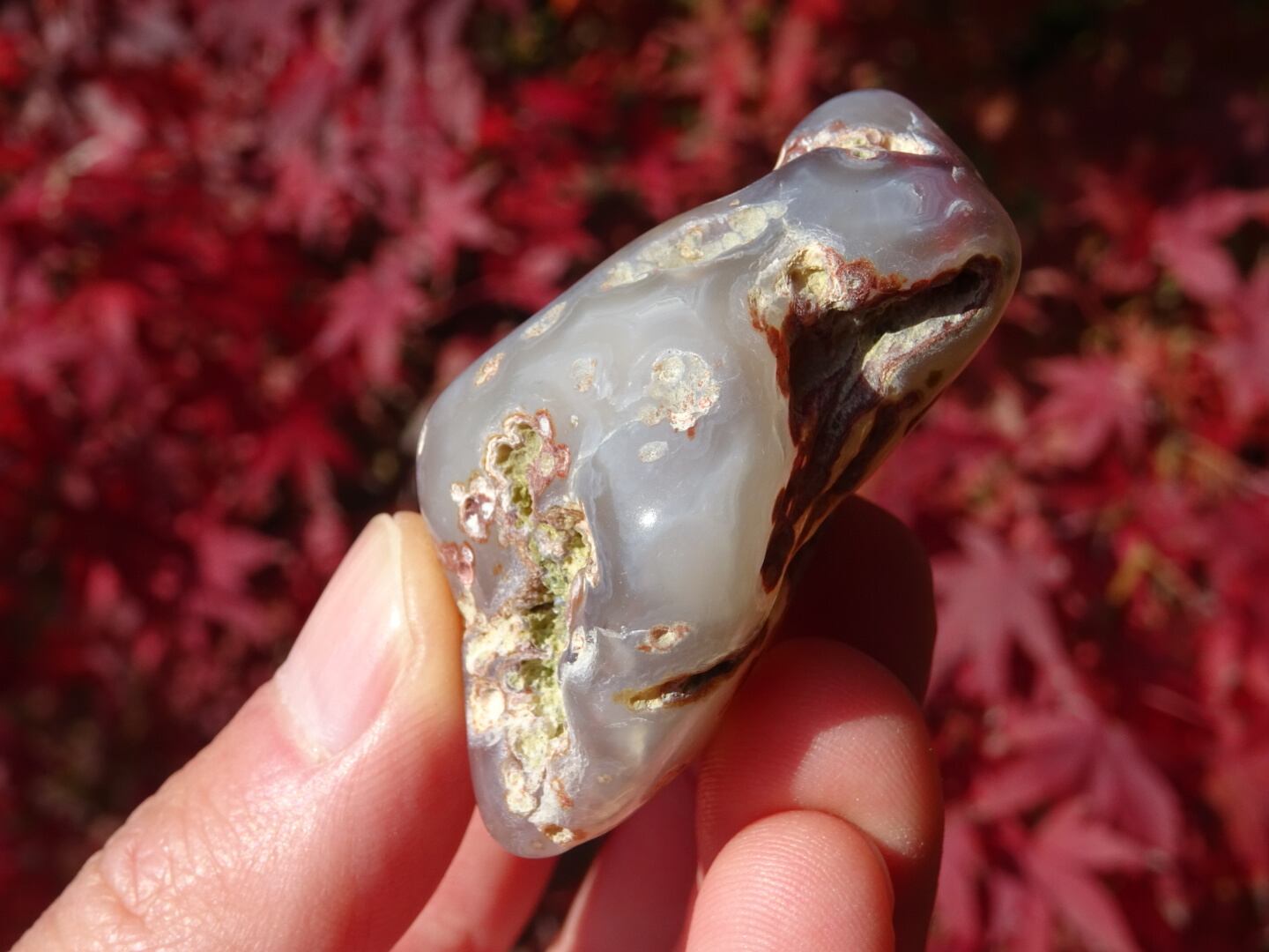様々な鉱物や化石を含んだ古代の地層から産まれるようで、後に川流れによって自然に磨かれたもののようです(仕上げの研磨は施されています)。