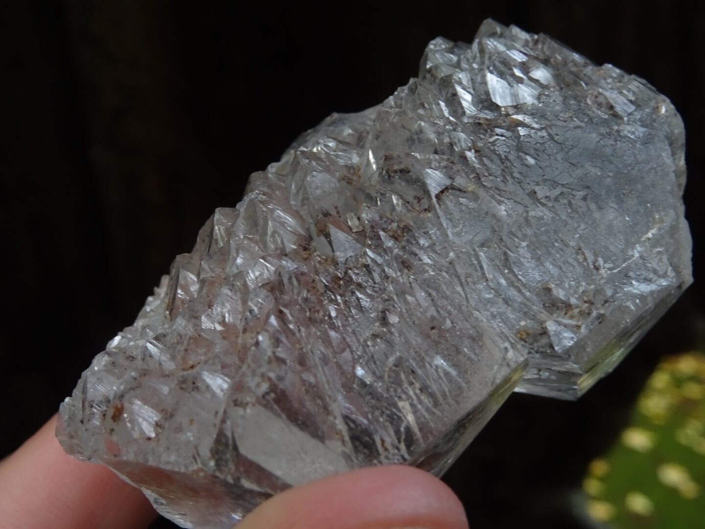 特筆すべきは根元のセルフヒールド(再結晶)。いわゆる「パーフェクト」と呼ばれる完全な山型の結晶たちが覆うようにザクザクと連晶しています。