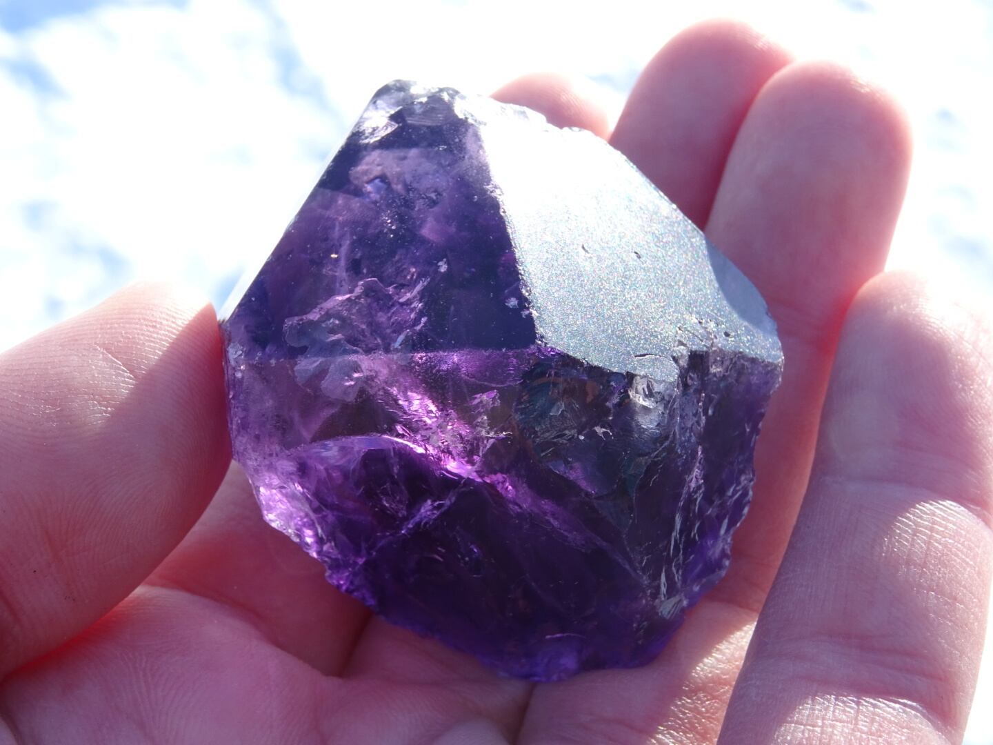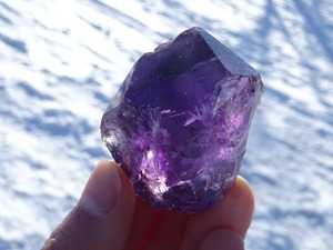 ブラジルやウルグアイのアメジストはほとんどクラスターのイメージがありますが、こちらは珍しいポイントタイプ。そして何より、この宝石質の美しいカラーにビリリと一目惚れしました。
