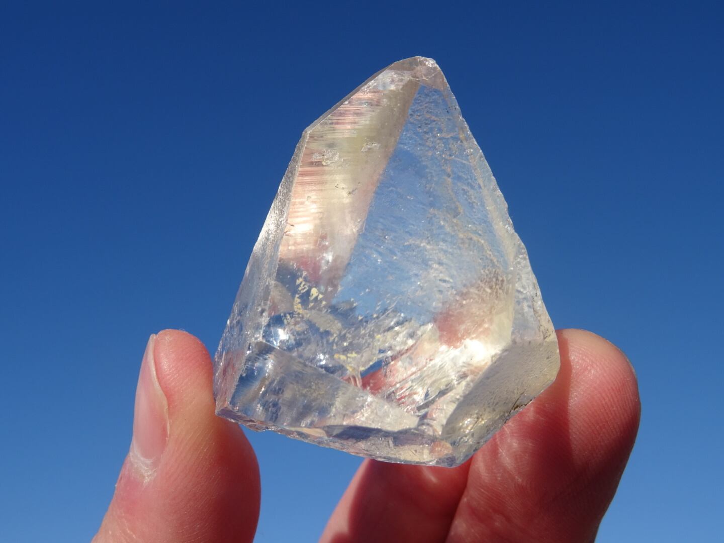 ややカケやキズなどはありますが、ピュアレイらしい輝き、トランスミッターの姿が素敵な石です。大きな7角形の両面に反射するリッジもまた素敵。