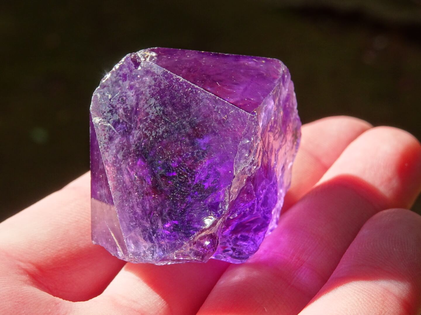 また、こちらは根元は逆三角形に欠落していますが、ファセットはとても整っていて綺麗なフォルム。手の平にチョコンと載せた姿もかわいいです。