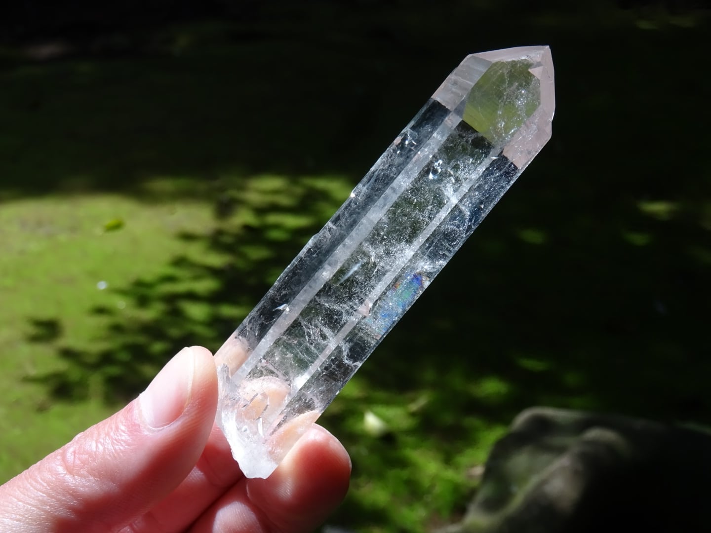 内部に踊るように浮かんでいる雲のようなインクルージョンも素敵。採光によって柱面に美しい虹のプリズムを反射してくれます。