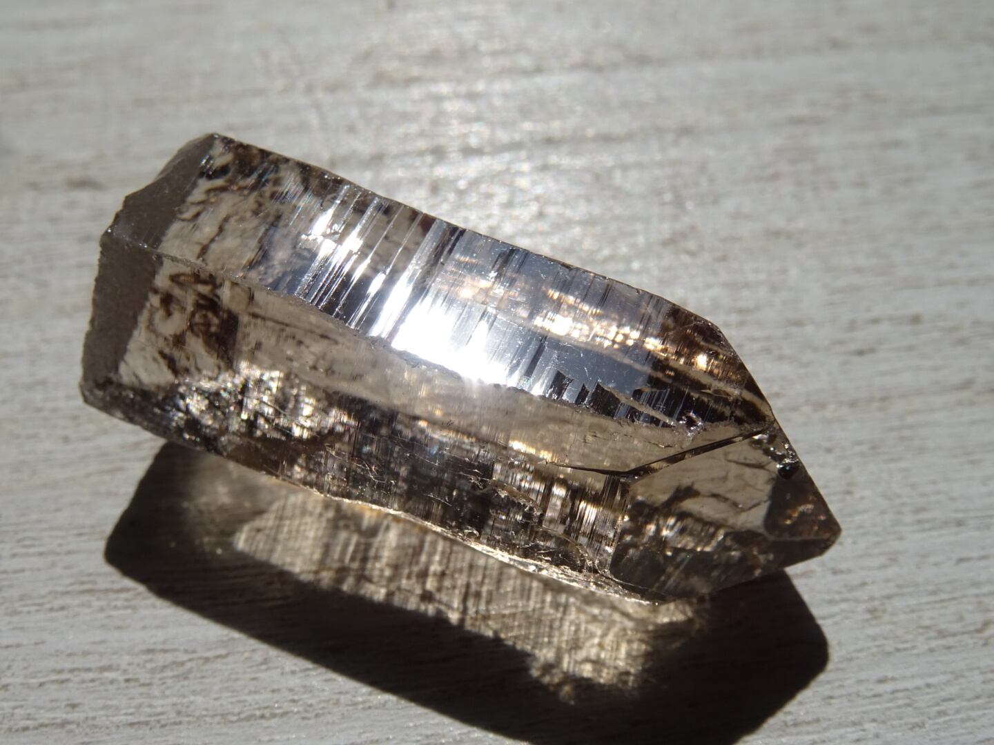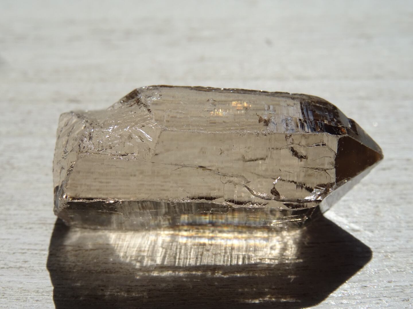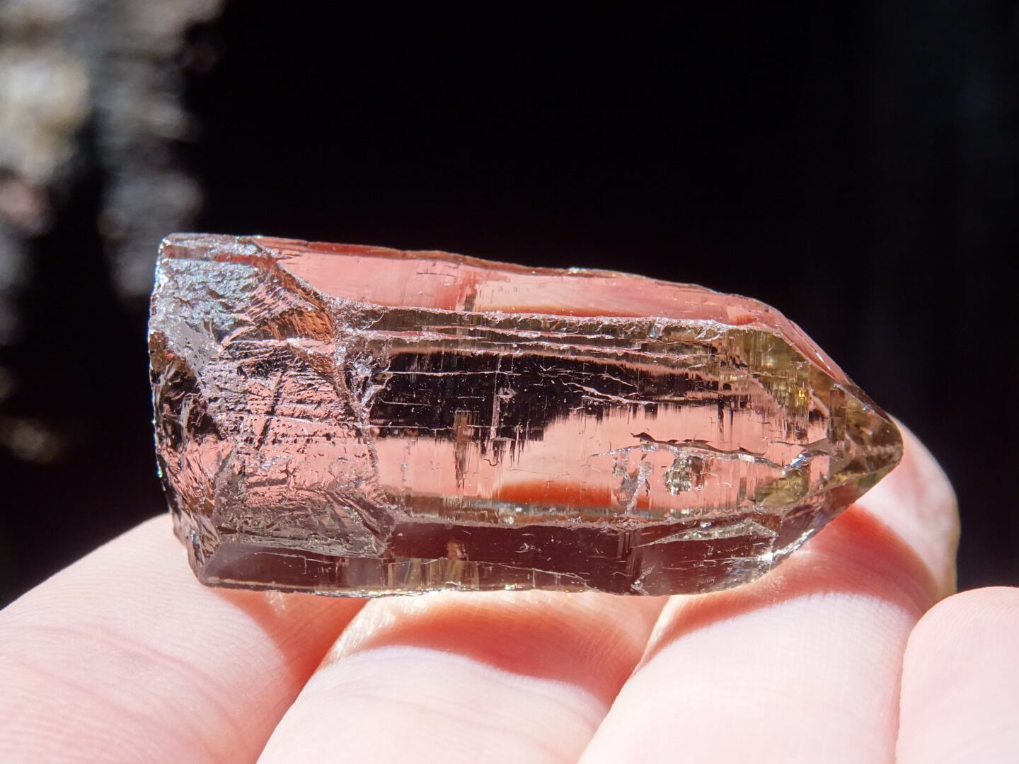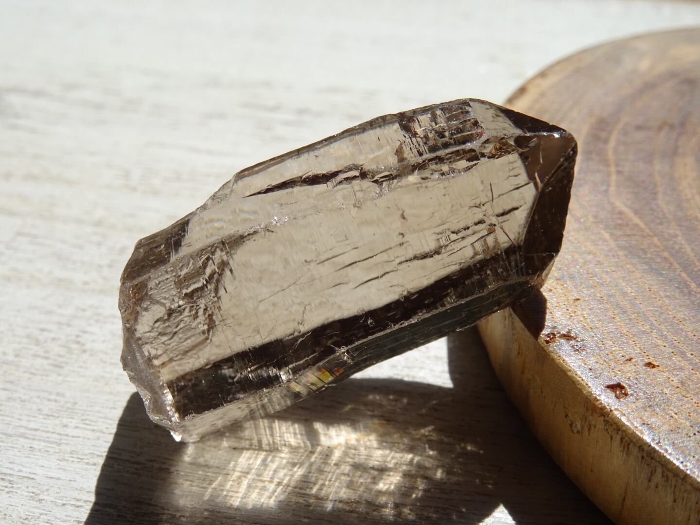 リッジというほど刻みは深くないのですが、とても細かな構造線や、水にうがたれた岩山のような石肌をしていて、その柱面につよい輝きが反射し合い虹のプリズムを出してくれます。
