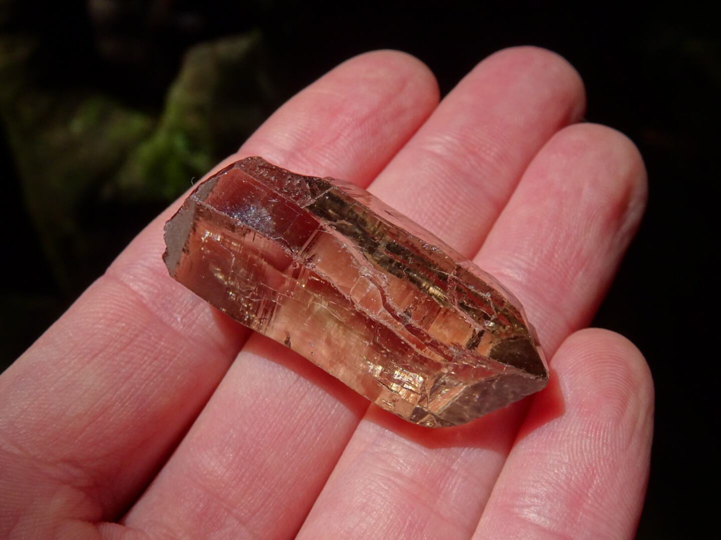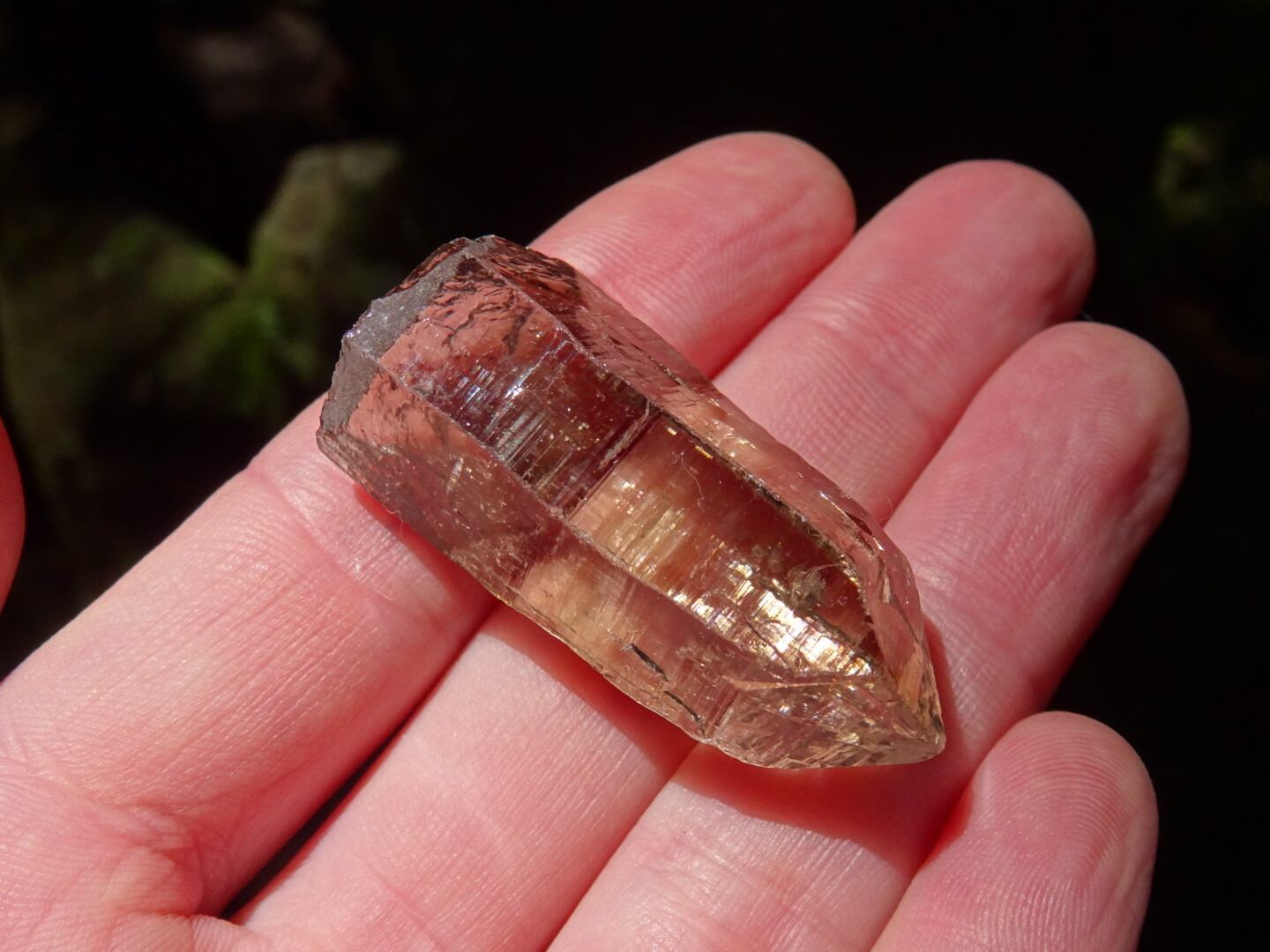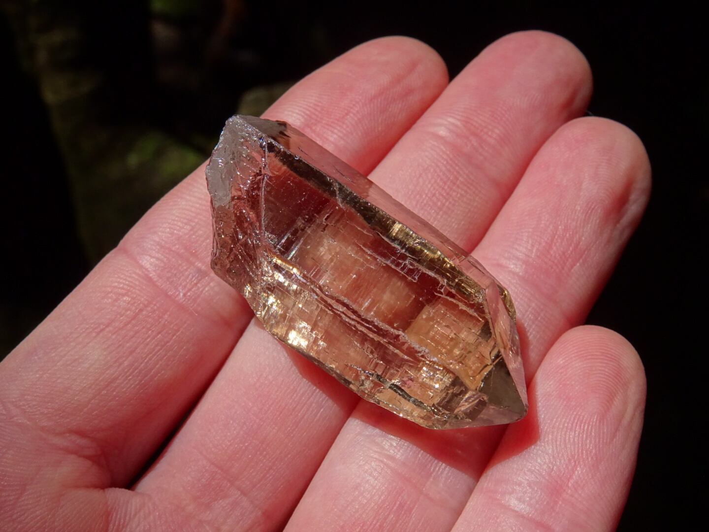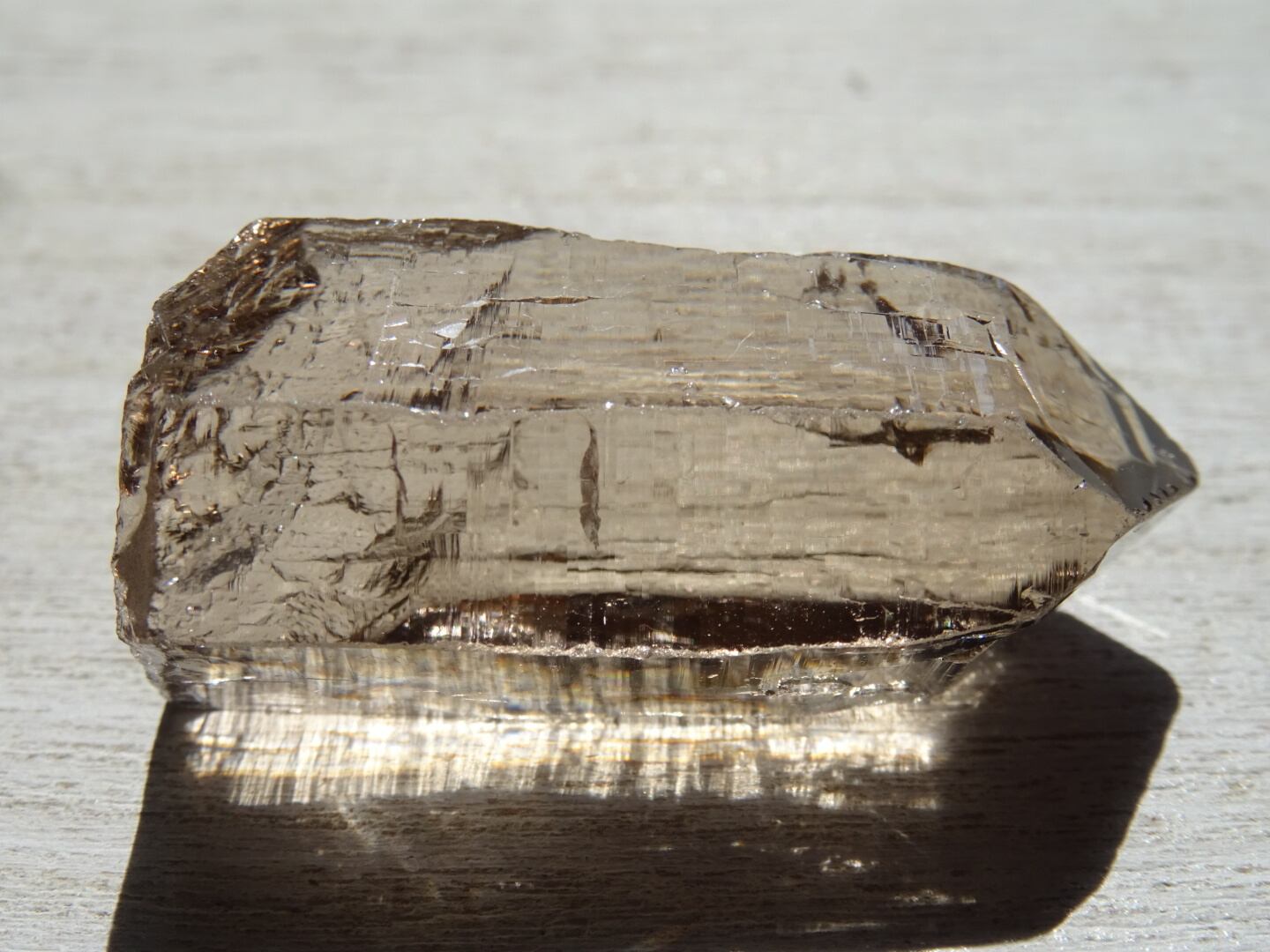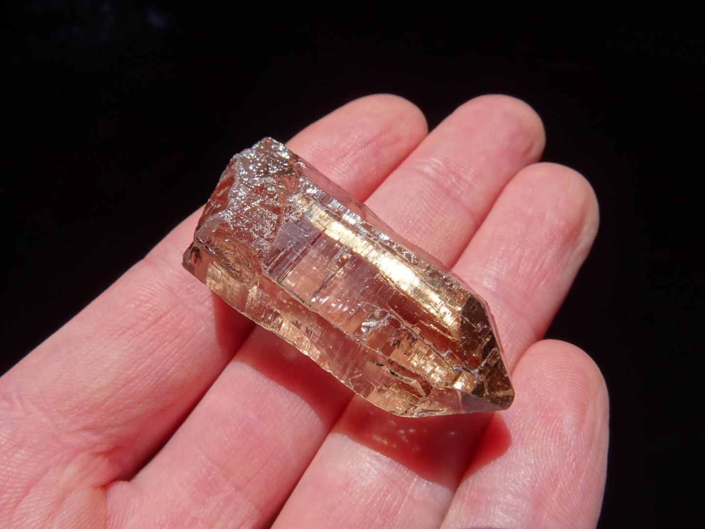 リッジというほど刻みは深くないのですが、とても細かな構造線や、水にうがたれた岩山のような石肌をしていて、その柱面につよい輝きが反射し合い虹のプリズムを出してくれます。