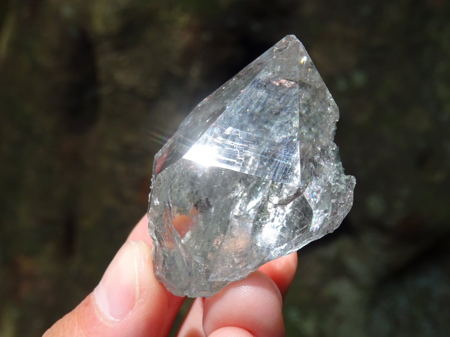 抜群の透明度、インクルージョンやクラックもほぼないフルクリアな結晶で、底面の氷のような輝きも素晴らしいです。