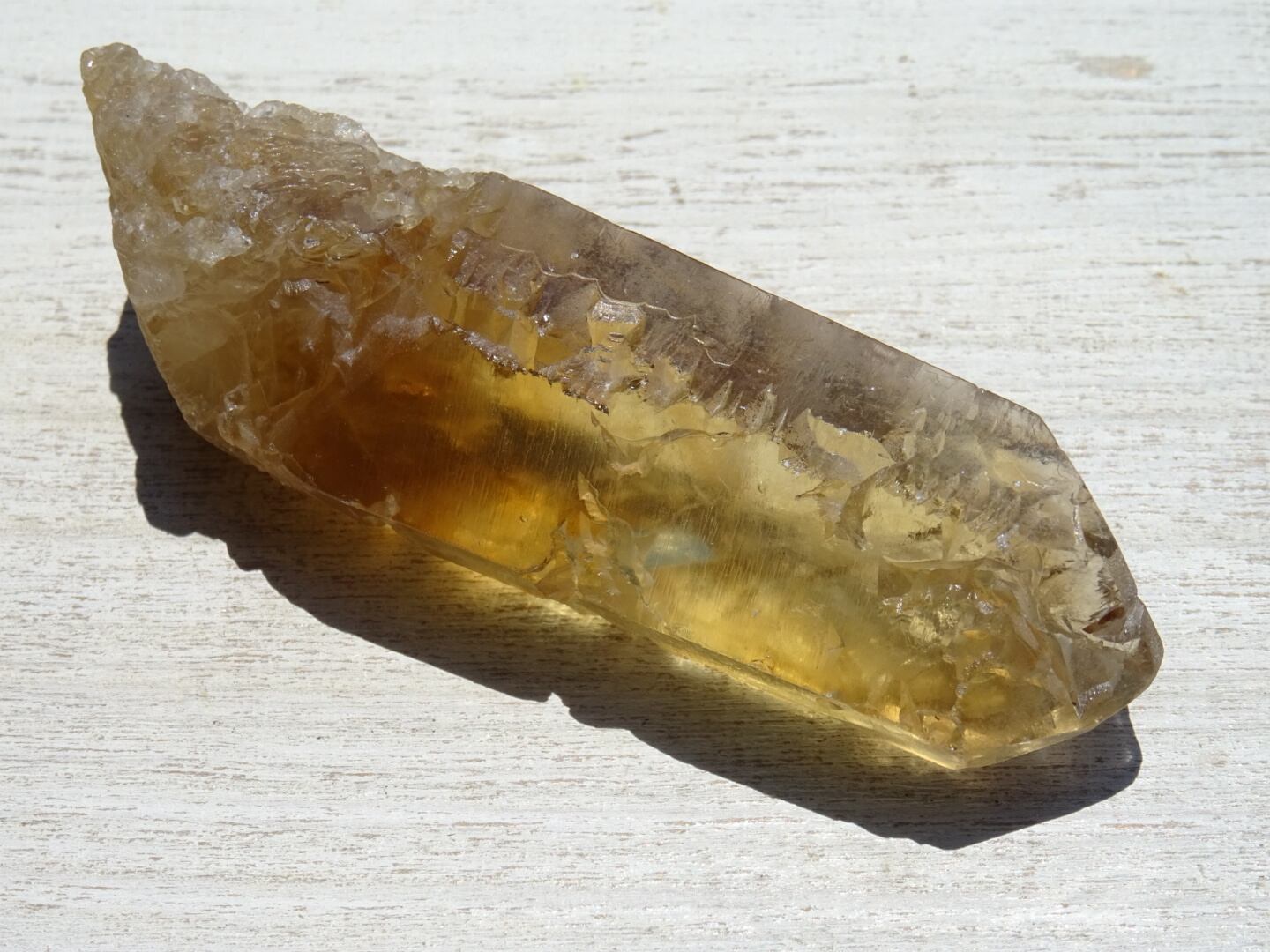 深くえぐるように、波打つようにギザギザに蝕像をうけた姿がなんともたまらないYellow Master。ファセットのかなり深くまで溶けこんだ様子など、溶け水晶のシトリンとしての魅力が溢れています。