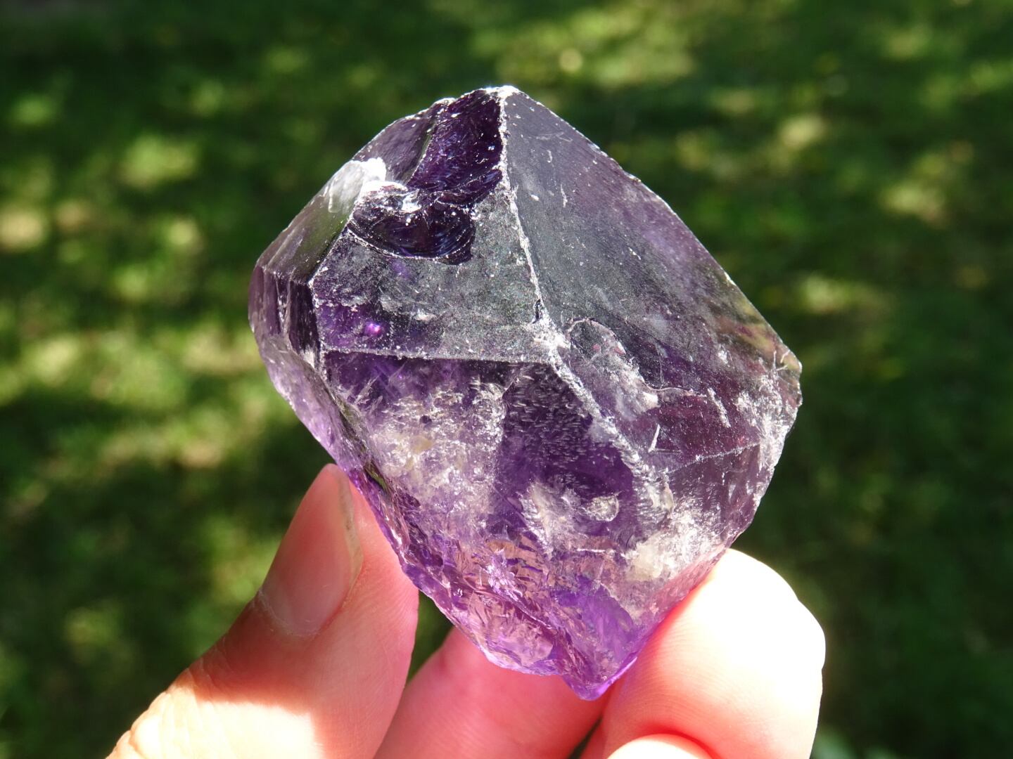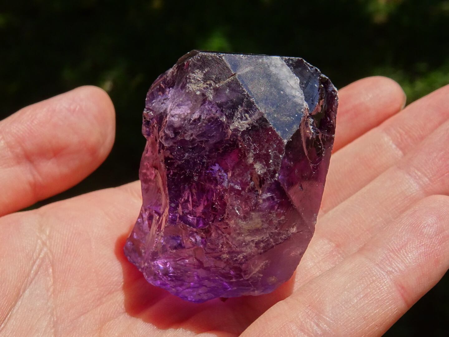 ややカケやキズなどは目立ちますが、「紫色の小さな岩石」のように濃密さや頼り甲斐を感じる、ストロングな結晶です。