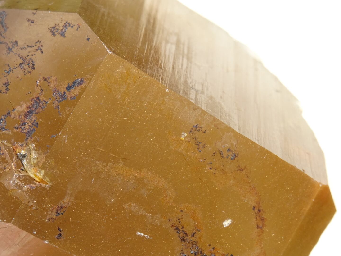 アストロフィライトやアンフィボールが溶けこんだゆえのこの大地カラーなのだろうけれど…よく見ると、非常に細かなエンジェルヘアー(天使の髪)ルチルを風に散らすように浮かべているのがわかります。