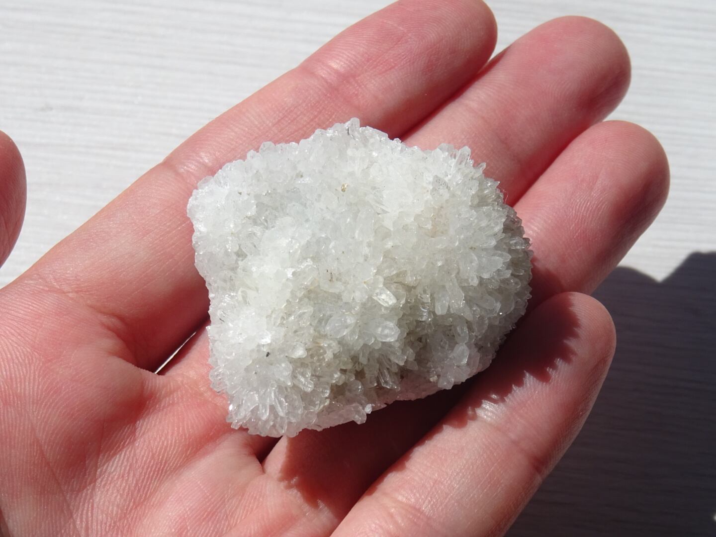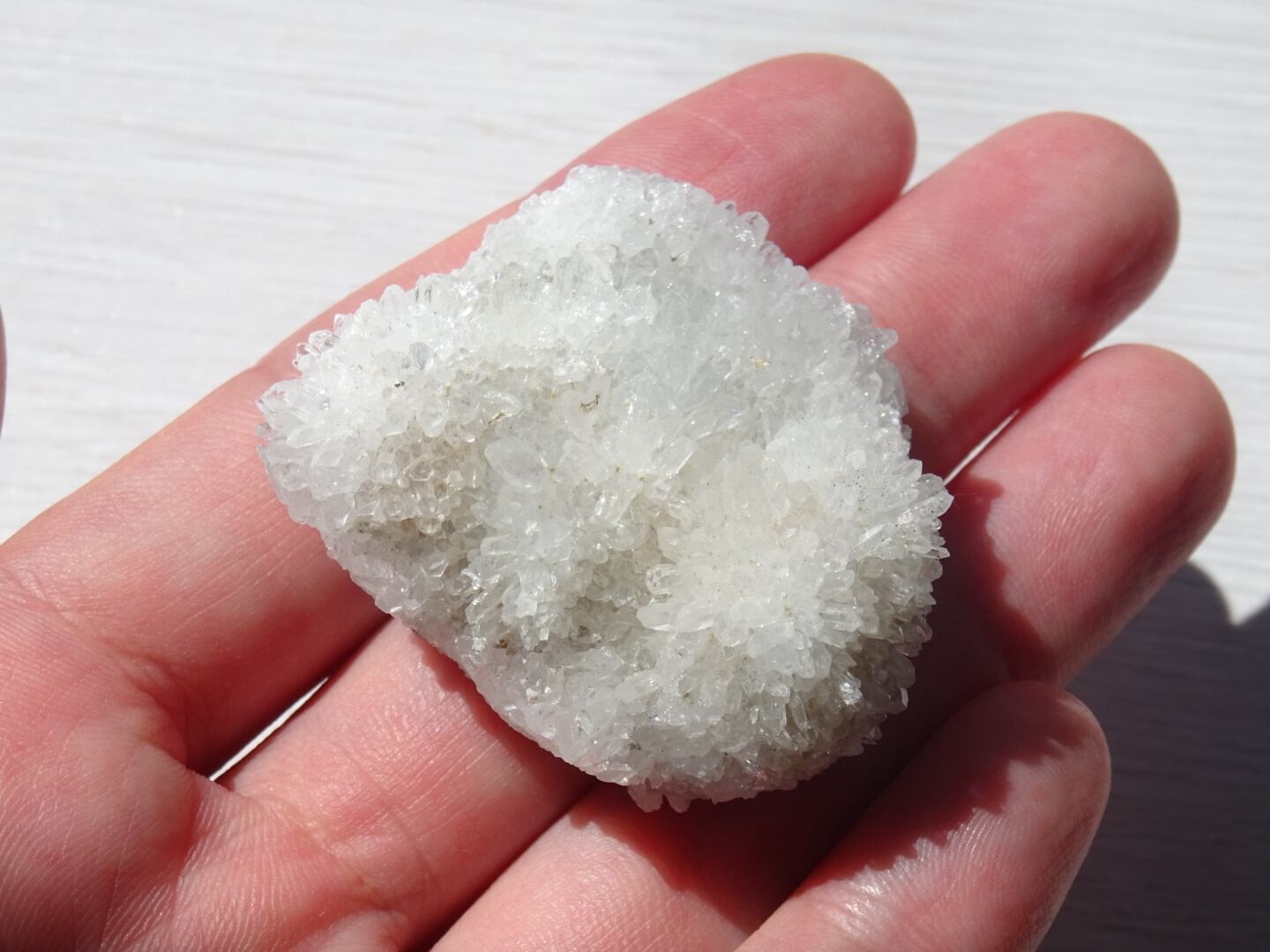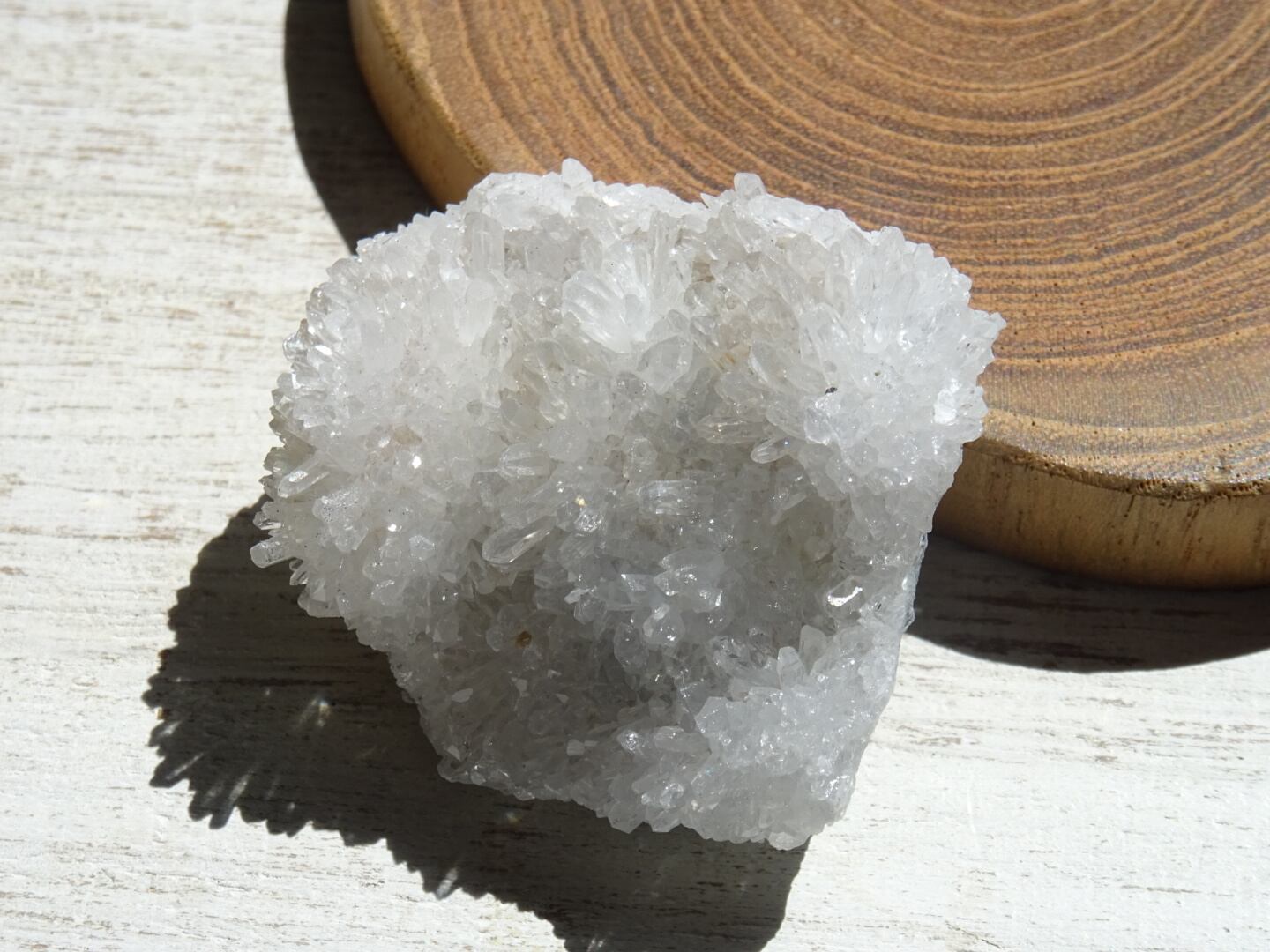 いくつか並んでいる中からとりわけ綺麗な子をセレクトしてきたのですが、母岩からびっしり育ったニョロニョロ結晶たちが、表情豊かな雪の丘をつくりながら輝いていて綺麗。うさぎのしっぽのような姿でもありますね。ひとつひとつしっかり先端まであるのも嬉しいところ。