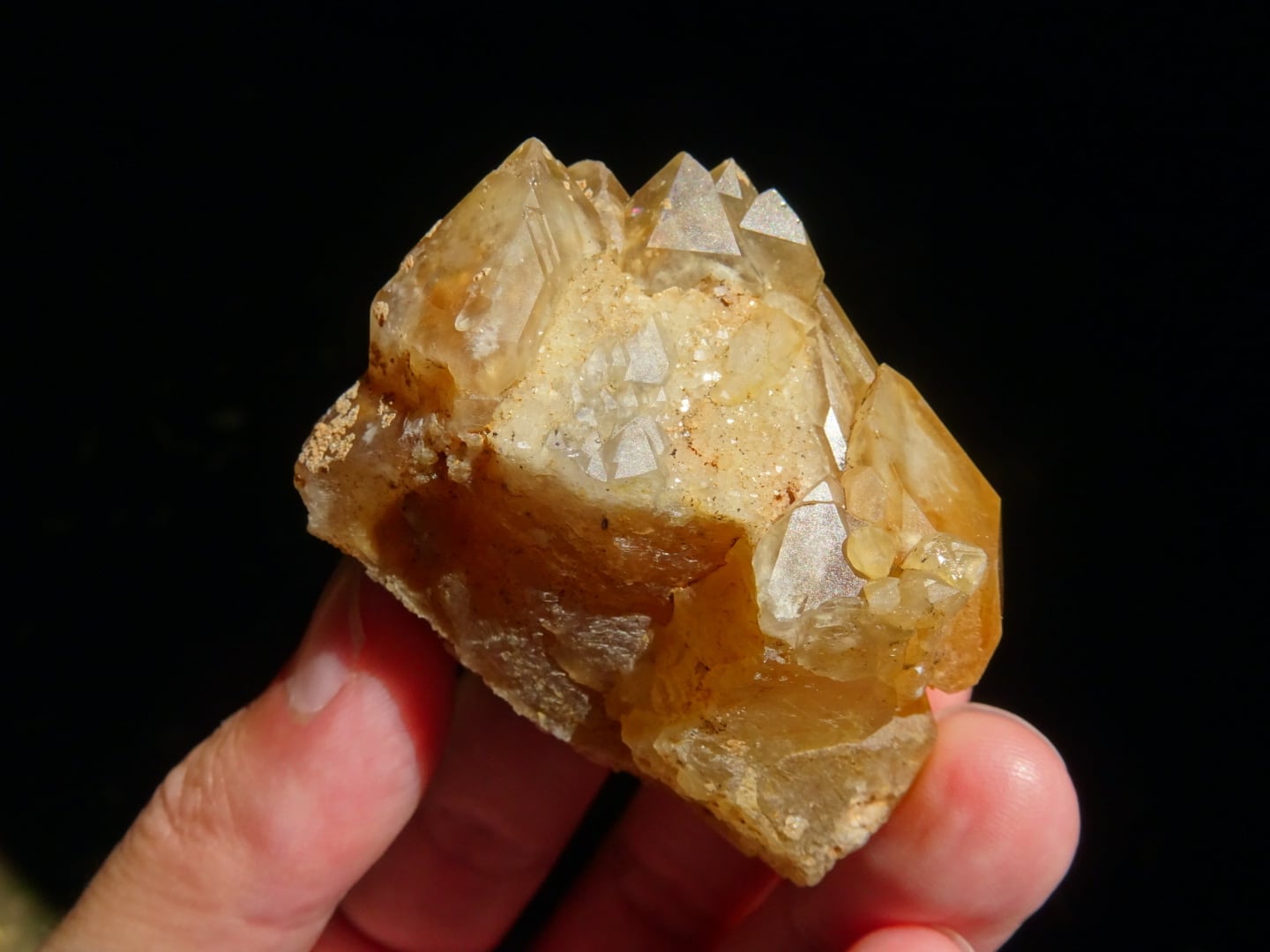 写真には撮り忘れてしまったのですが、正面から左の結晶面に美しい虹色の虹彩を見せてくれる部分があります。
