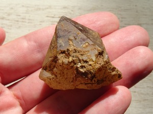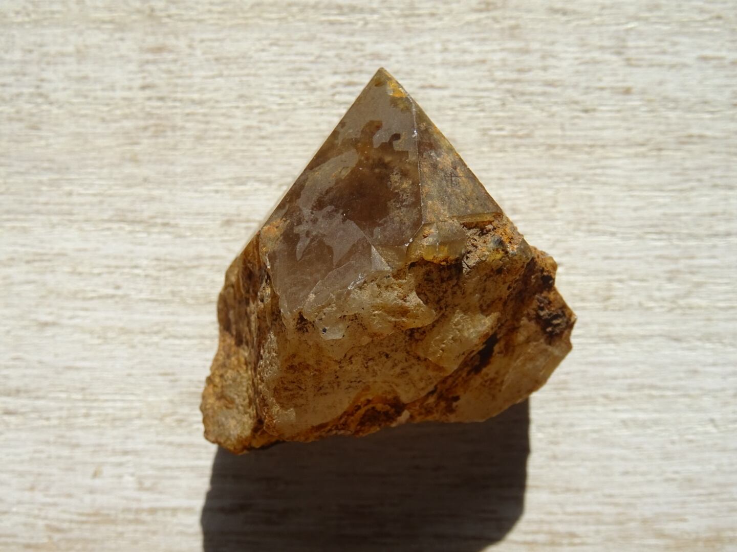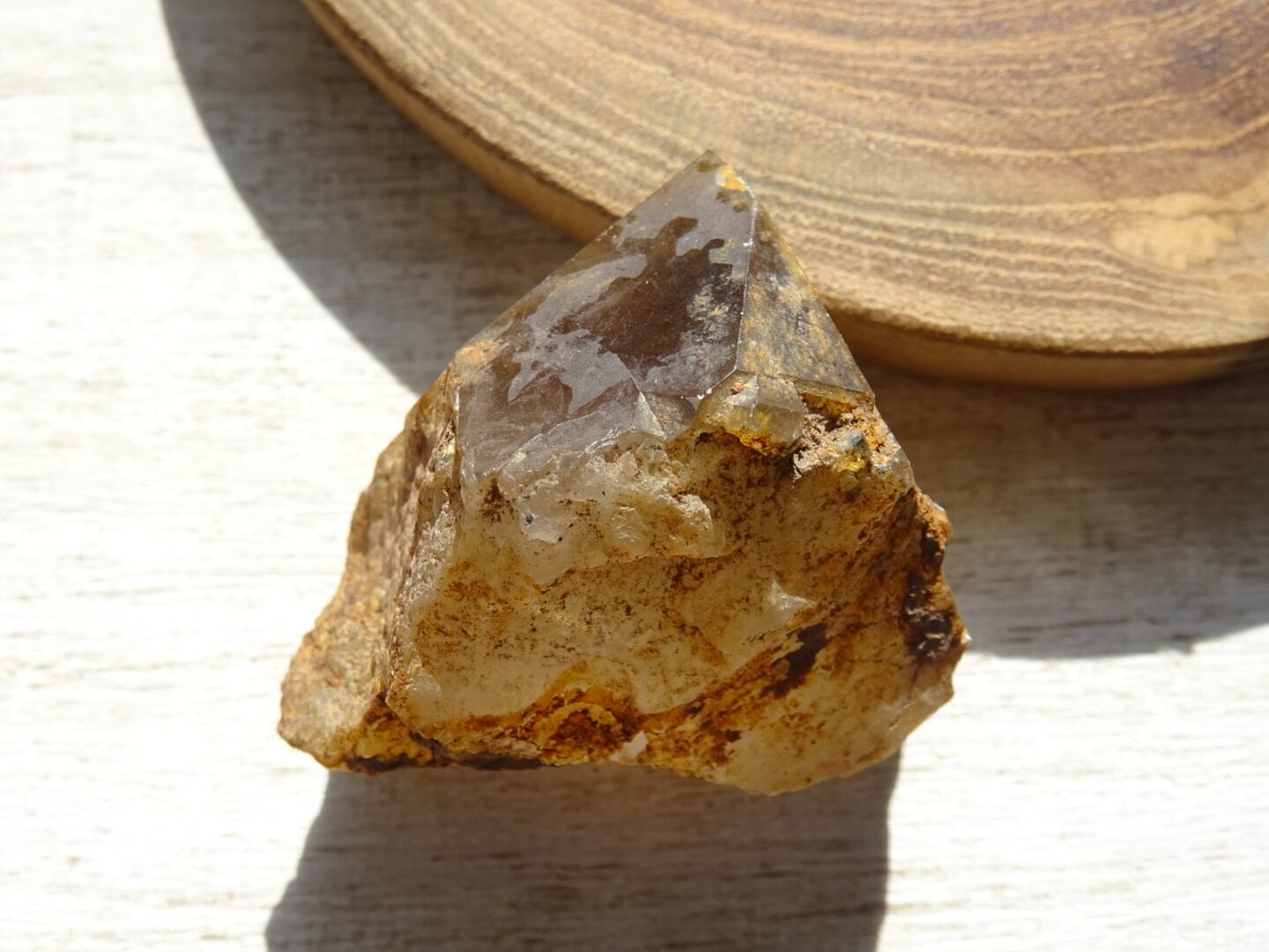 ファセットの部分を綺麗に残してくれている子で、結晶そのものはクリアなスモーキーなのですが、全体にブラウン系の土のような成分を付着させています。