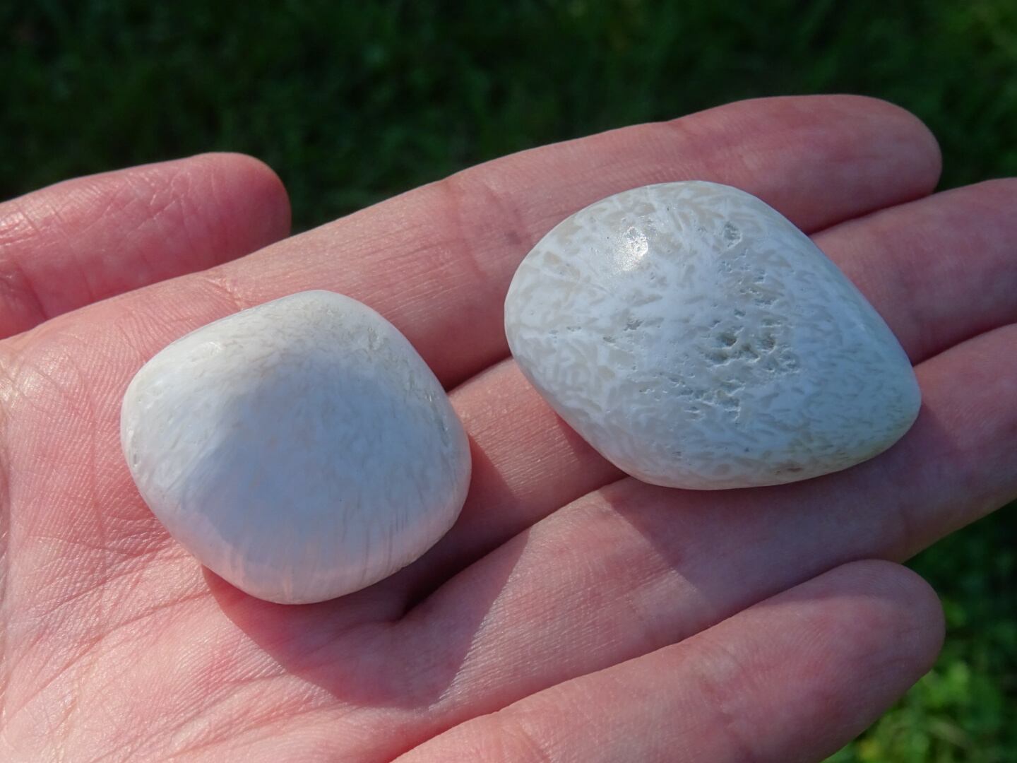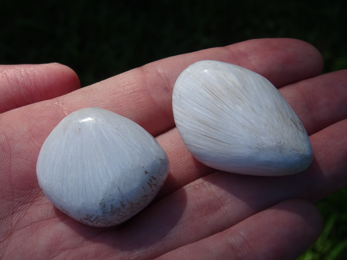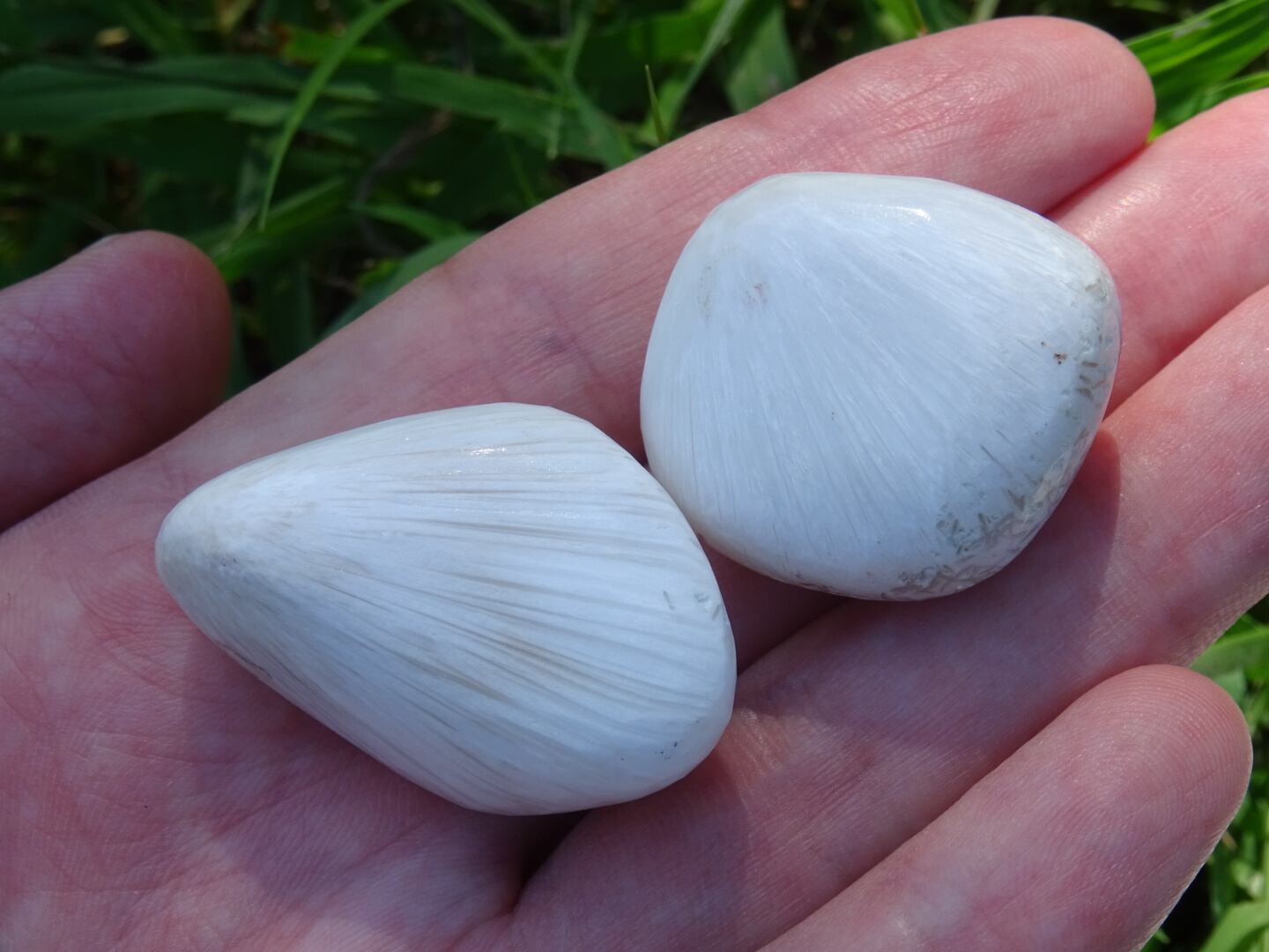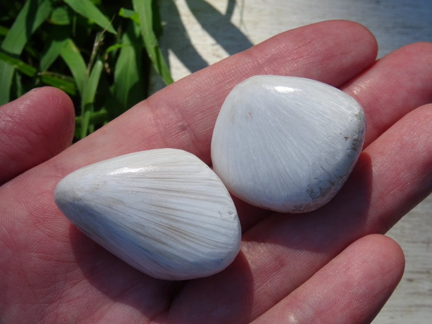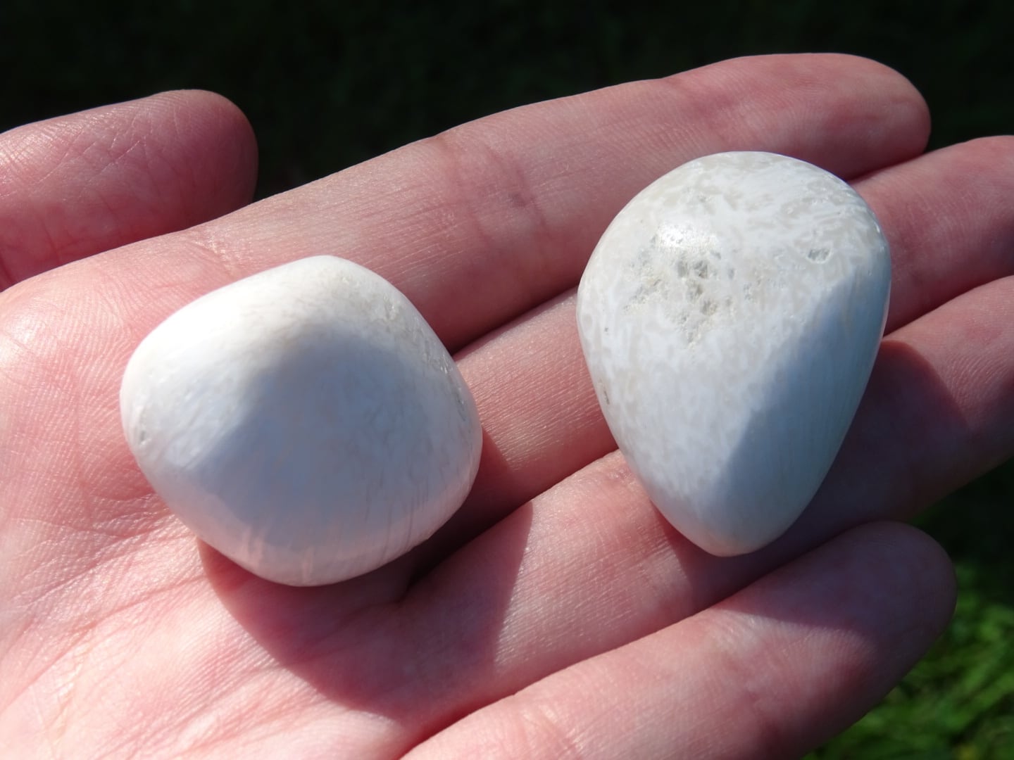 純白の石肌が美しいスコレサイトの磨き石。