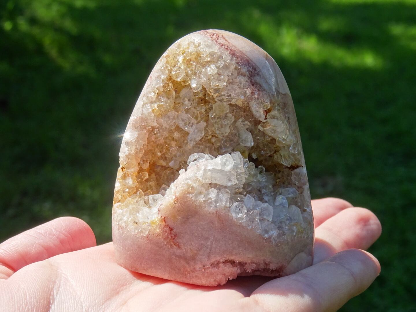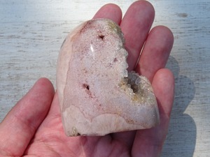 個人的な感じ方ですが、やはりこういったジオードは(小さな石でも)ピュアで純度の高いものを「呼びこんでくれる」感覚があります。福を招いてくれそうといいますか、やはりエネルギーの流れのようなものを象ってくれる気がするのです。