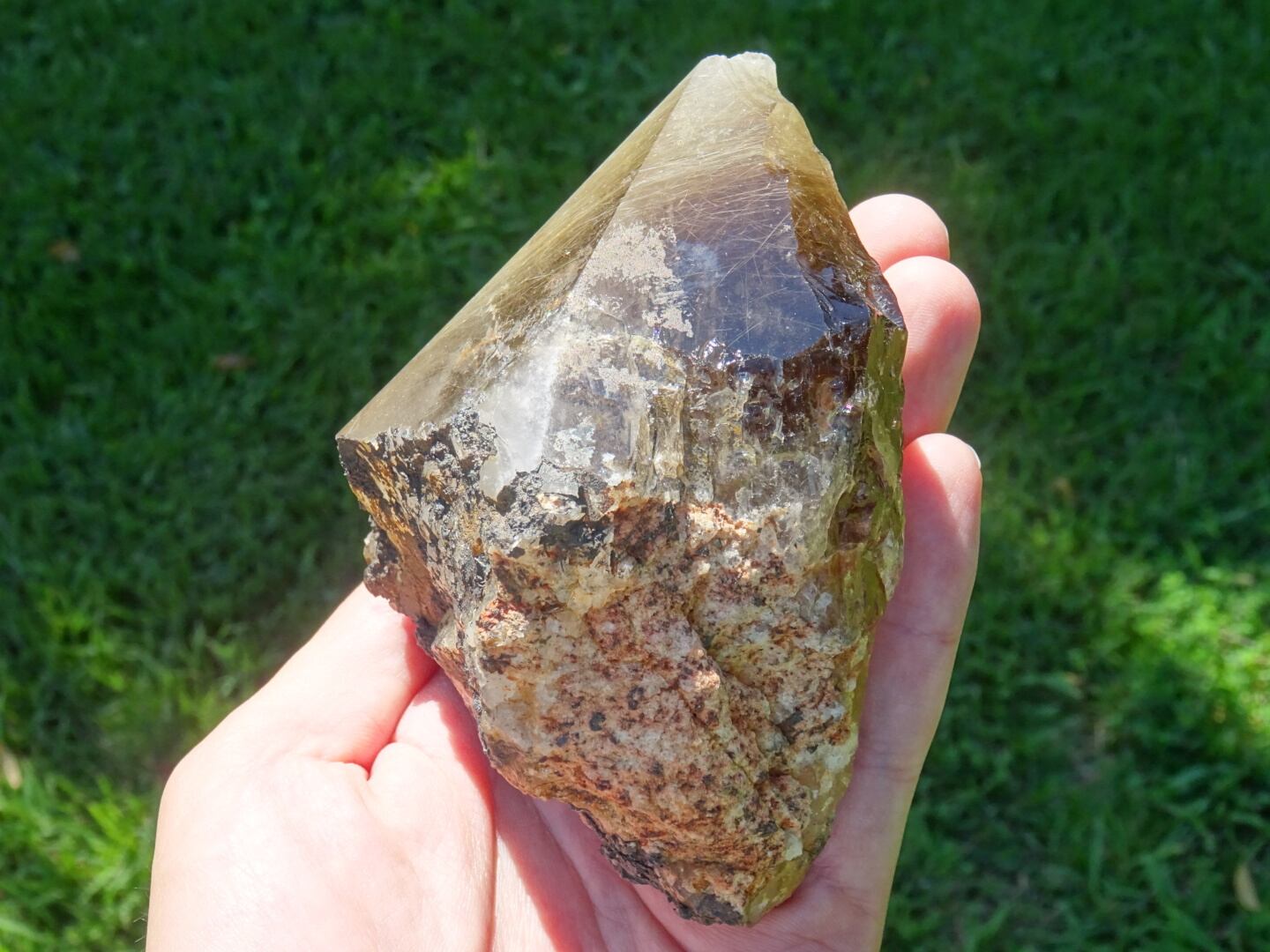 ルチルが入っていない面から見ると、この石はかなり深いスモーキーの色だということがわかります。
