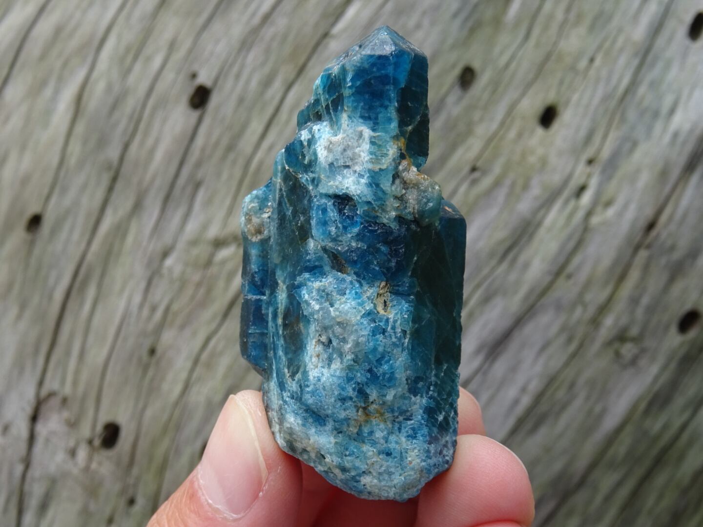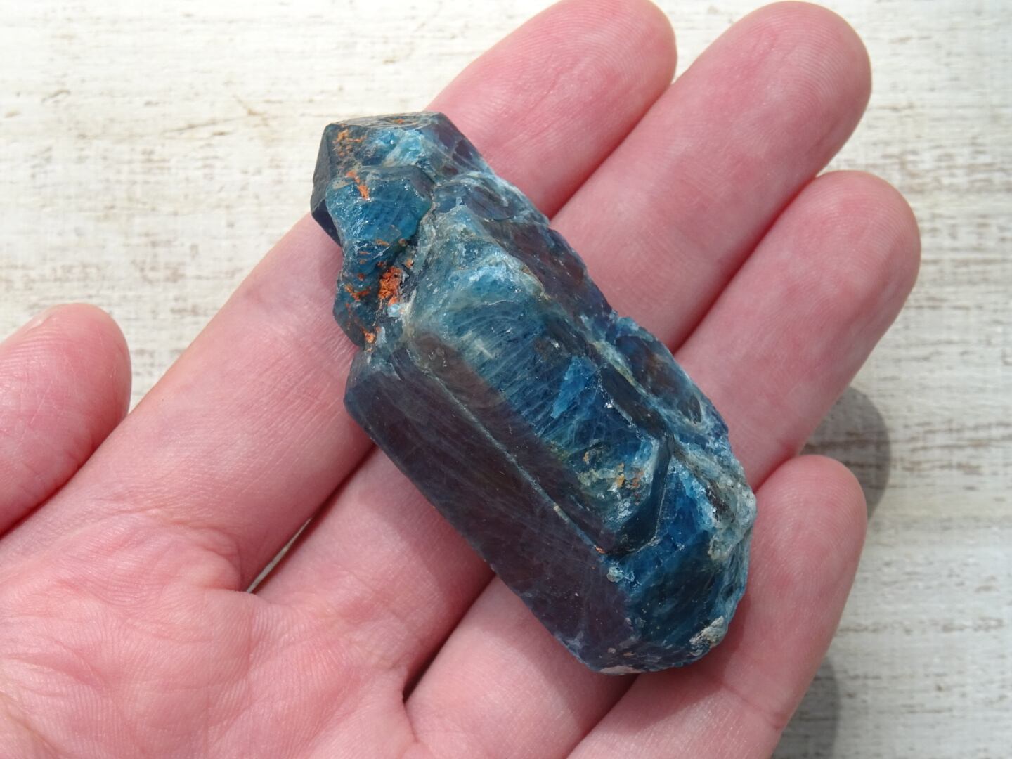 深いインディゴ~藍色が美しいブルーアパタイトの結晶原石です。