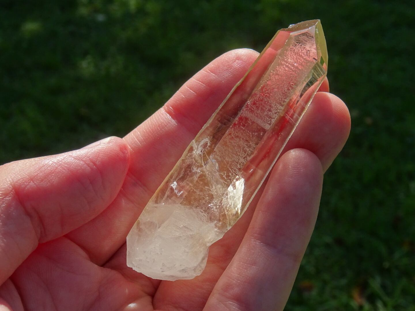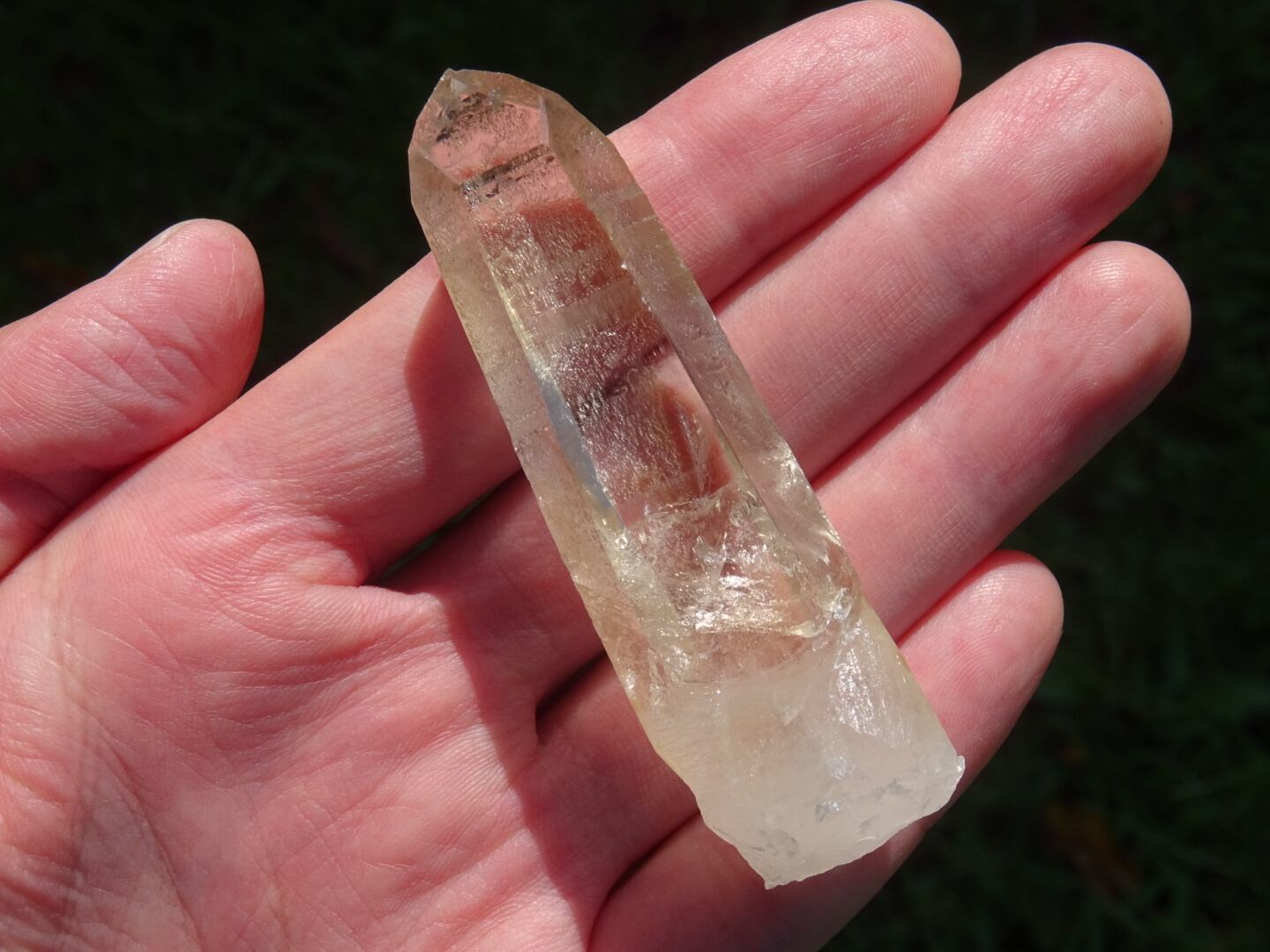 成因はわからないのですが、ビジョンクォーツはうっすらとゴールドに色づいたものも多いのです。こちらももしかしたらシトリンになっているのかな?という淡いクリアゴールド。