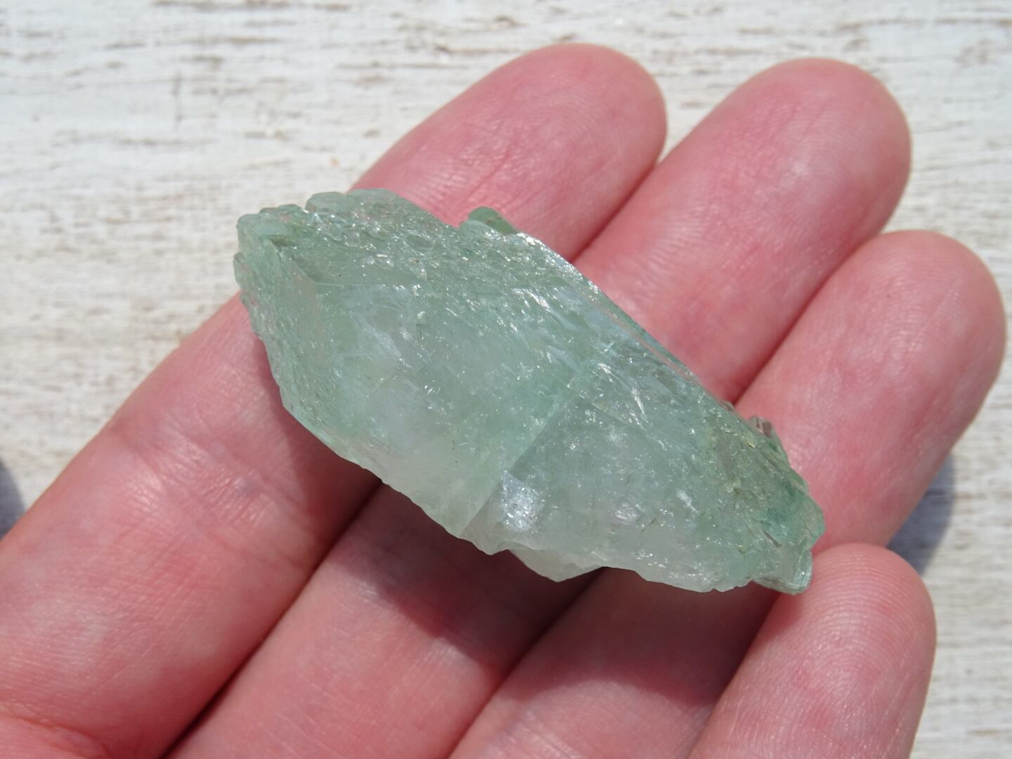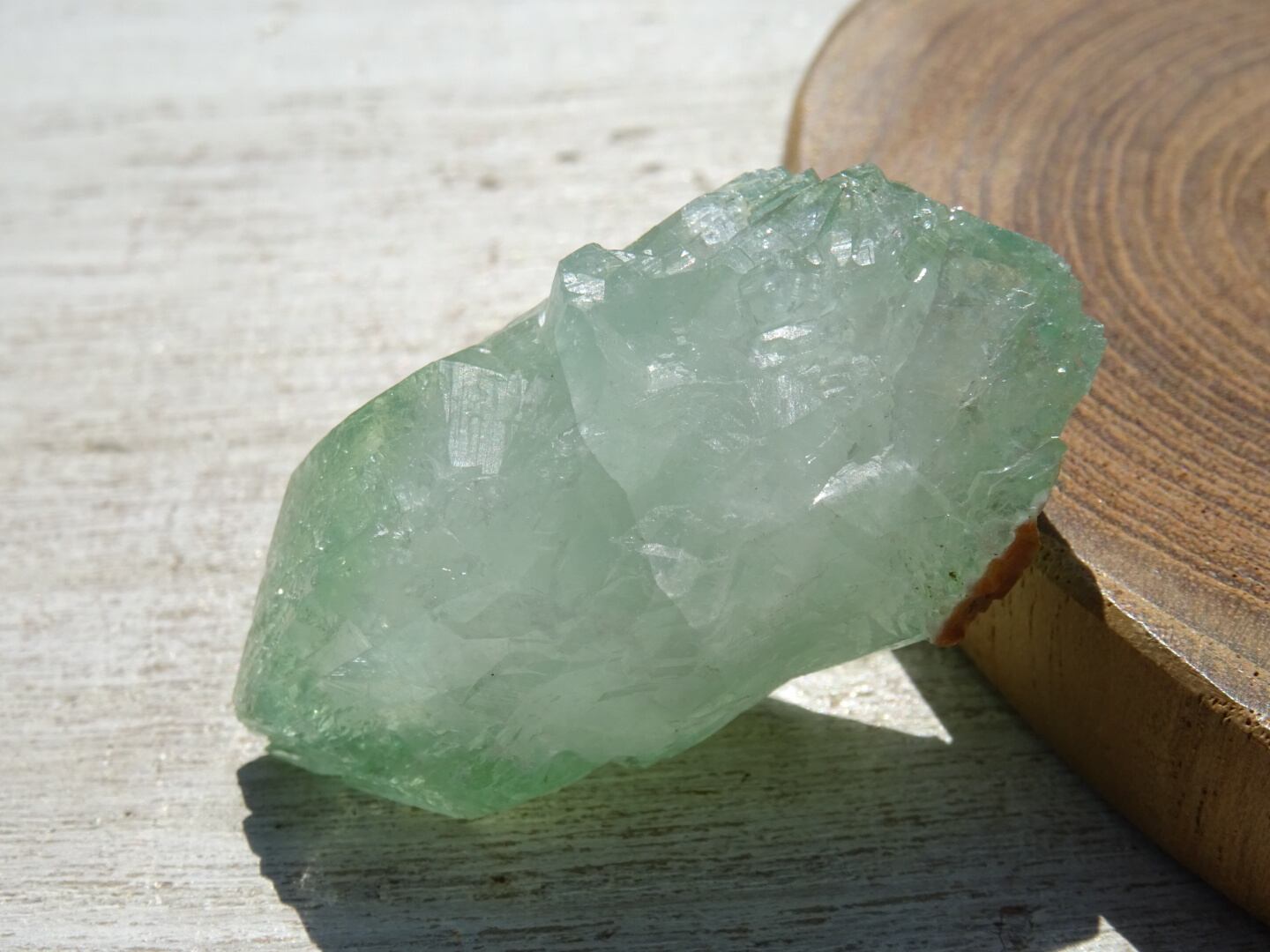 グリーンの鉱物はいくつかありますが、この儚げで瑞々しい緑色は、グリーンアポフィライトだけと思えます。また、とてもクリアで軽い響きの石です。