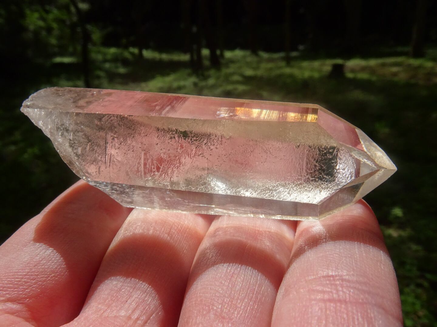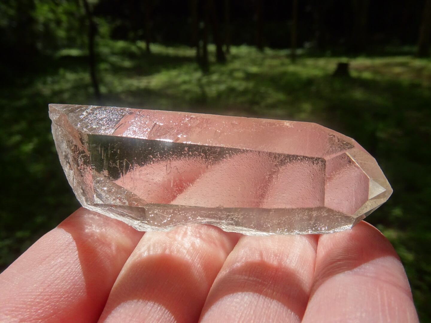 ファセットは7.3.7.3.7.3角形が連なる「ダウ」になっており、ビジョンクォーツ特有の一面おきの蝕像痕もよく出ています。