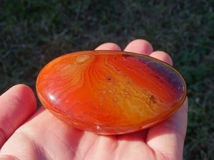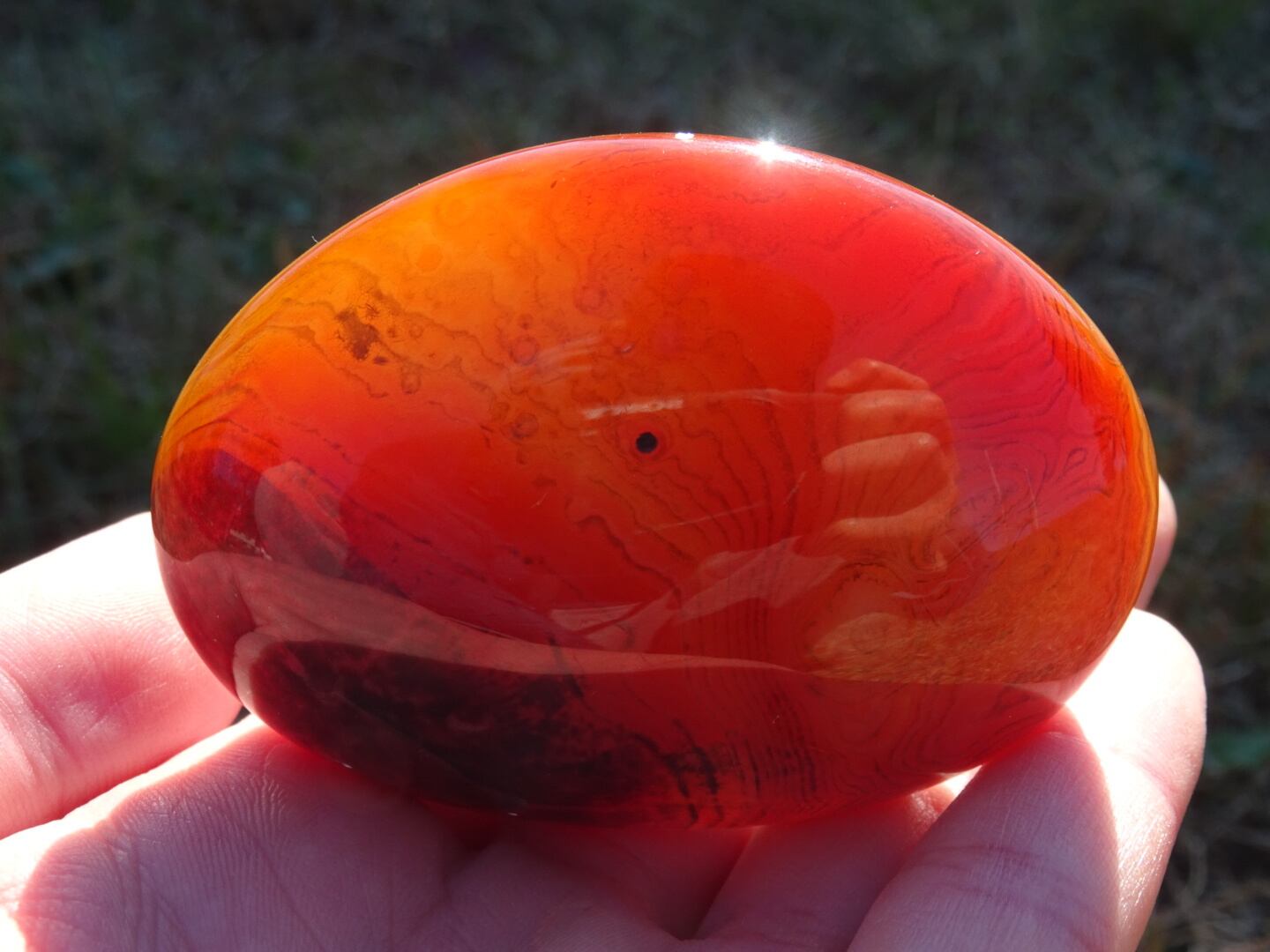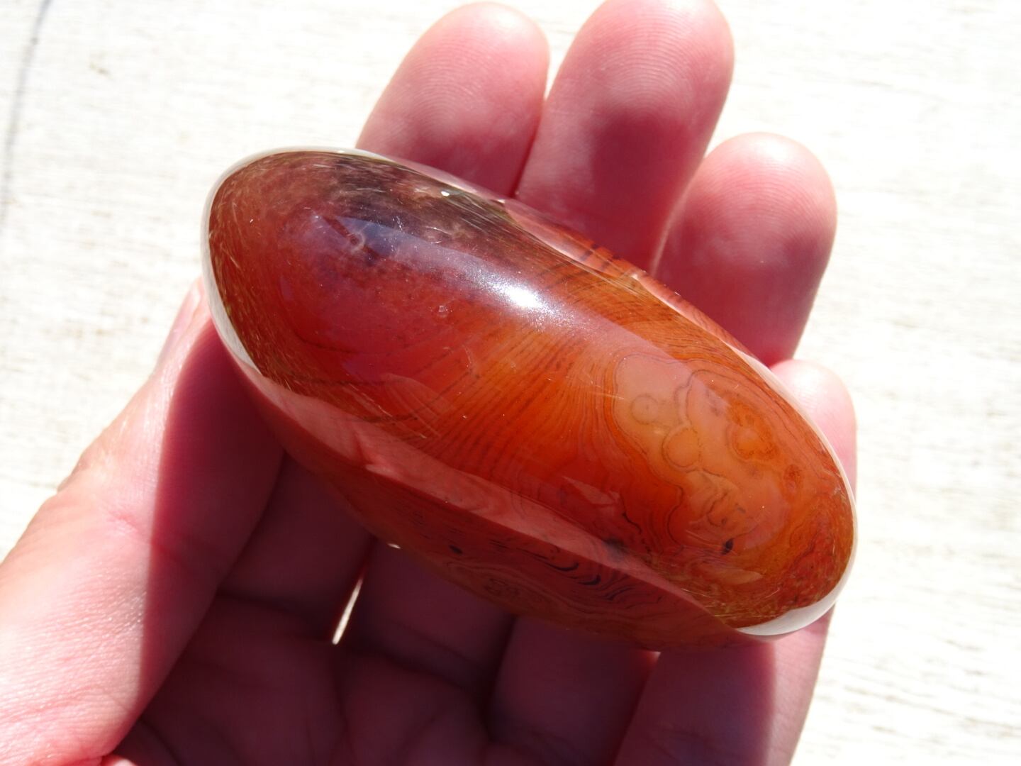 アゲートもカルセドニーも微細なクォーツが寄り集まった鉱物で、こちらは鉄分の影響で赤色になっています。