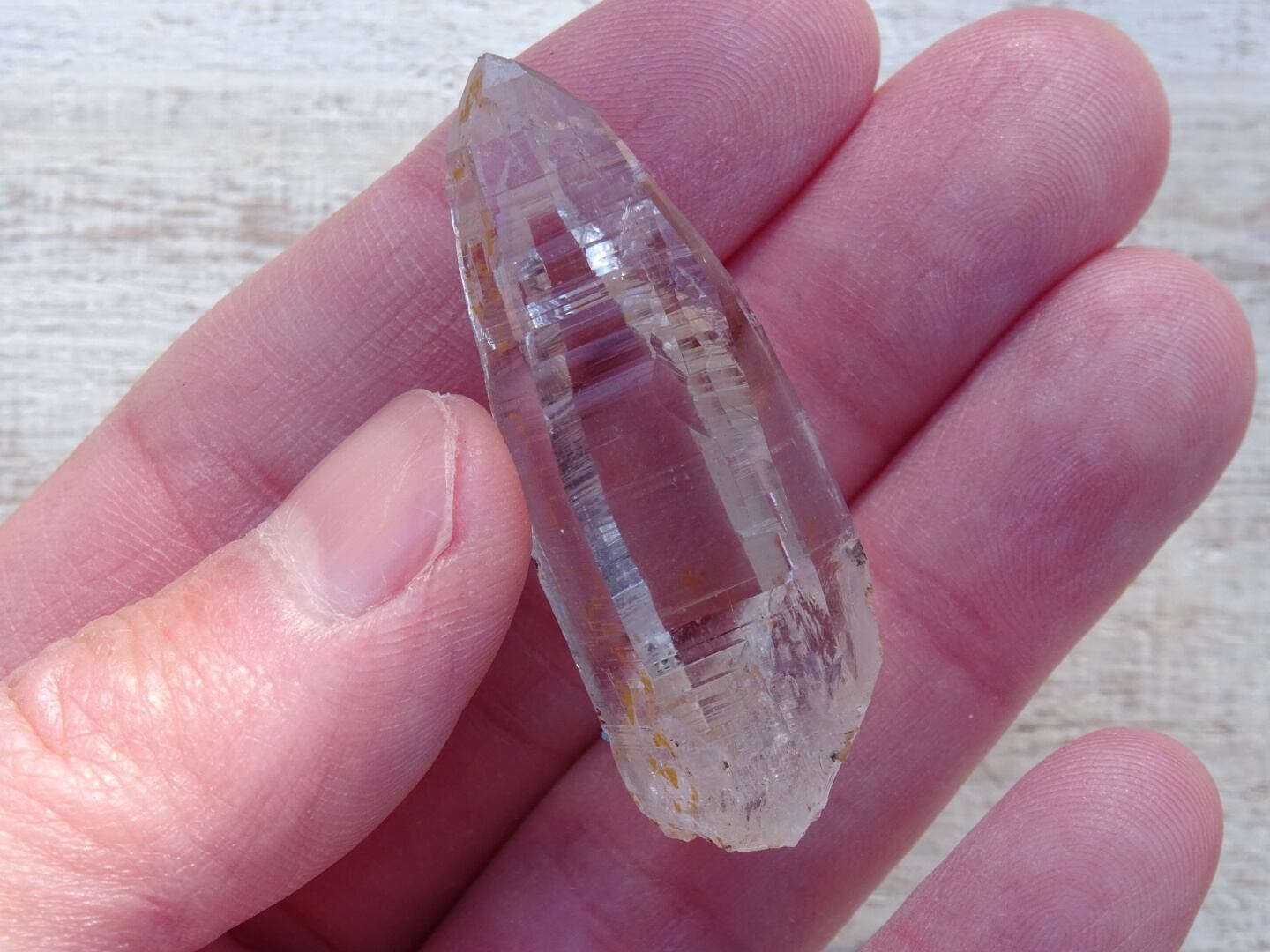 こちらはヒマラヤンクリスタルを専門に扱う、(たしか)ネパール人のセラーからお譲り頂いた石ですが、彼が並べる石たちは、不思議なほどひとつひとつに愛情が感じられてきらきらと輝いて見えました。