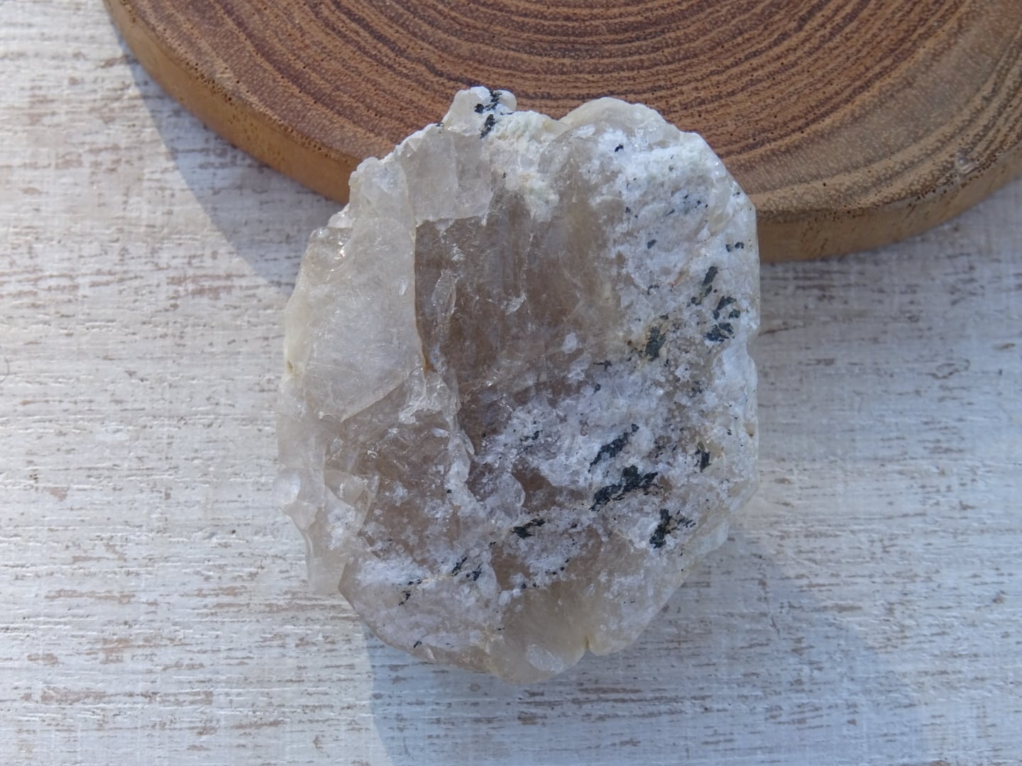 白い繊毛状のホワイトルチル(ラビットヘア)をもっさりと内包しており、その影響で白く見えている珍しいザギです。