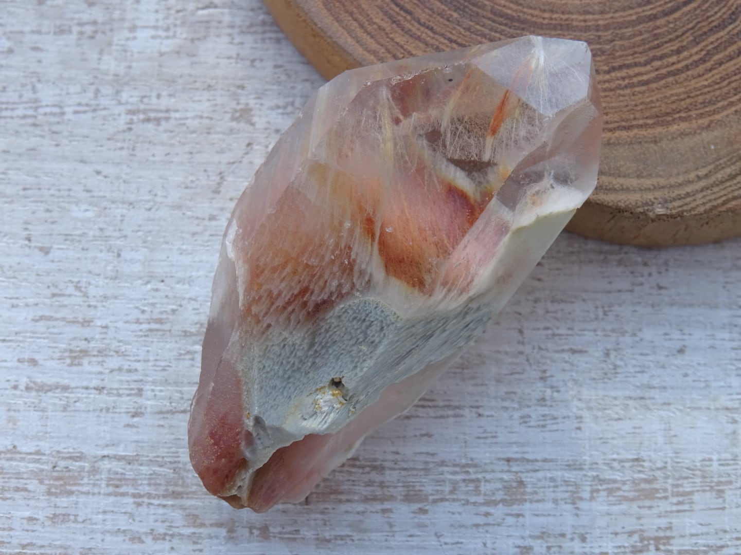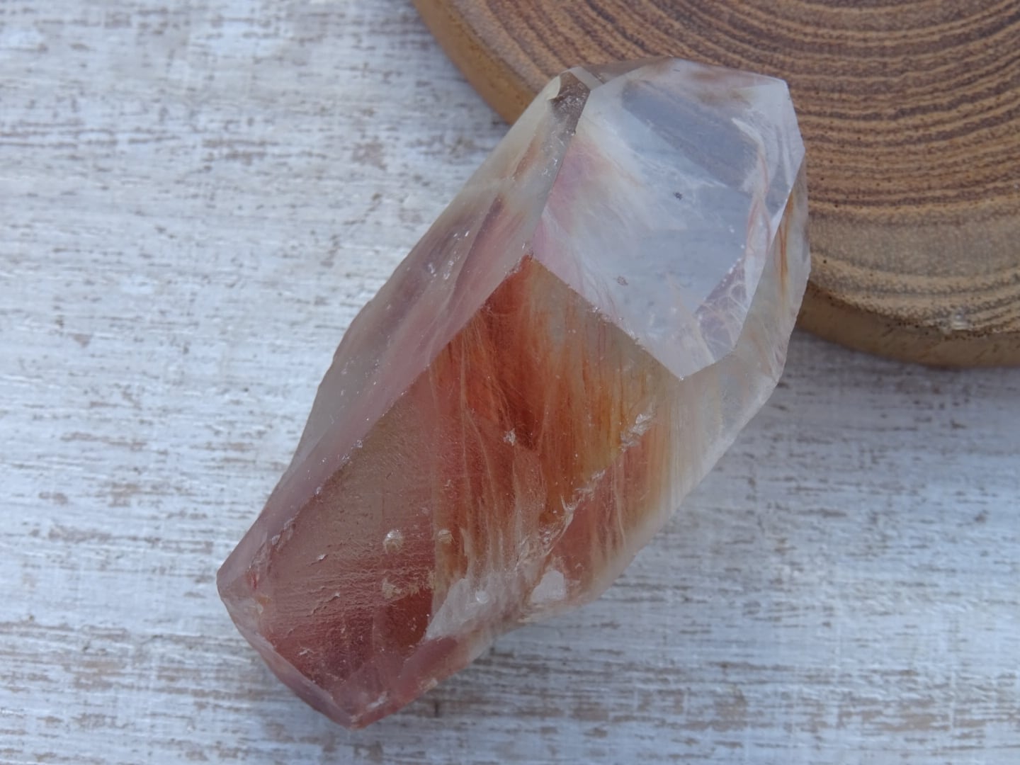 アンフィボールインクォーツは別名「エンジェルファントム」とも呼ばれていて、羽毛状の角閃石を内包しているのが特徴。
