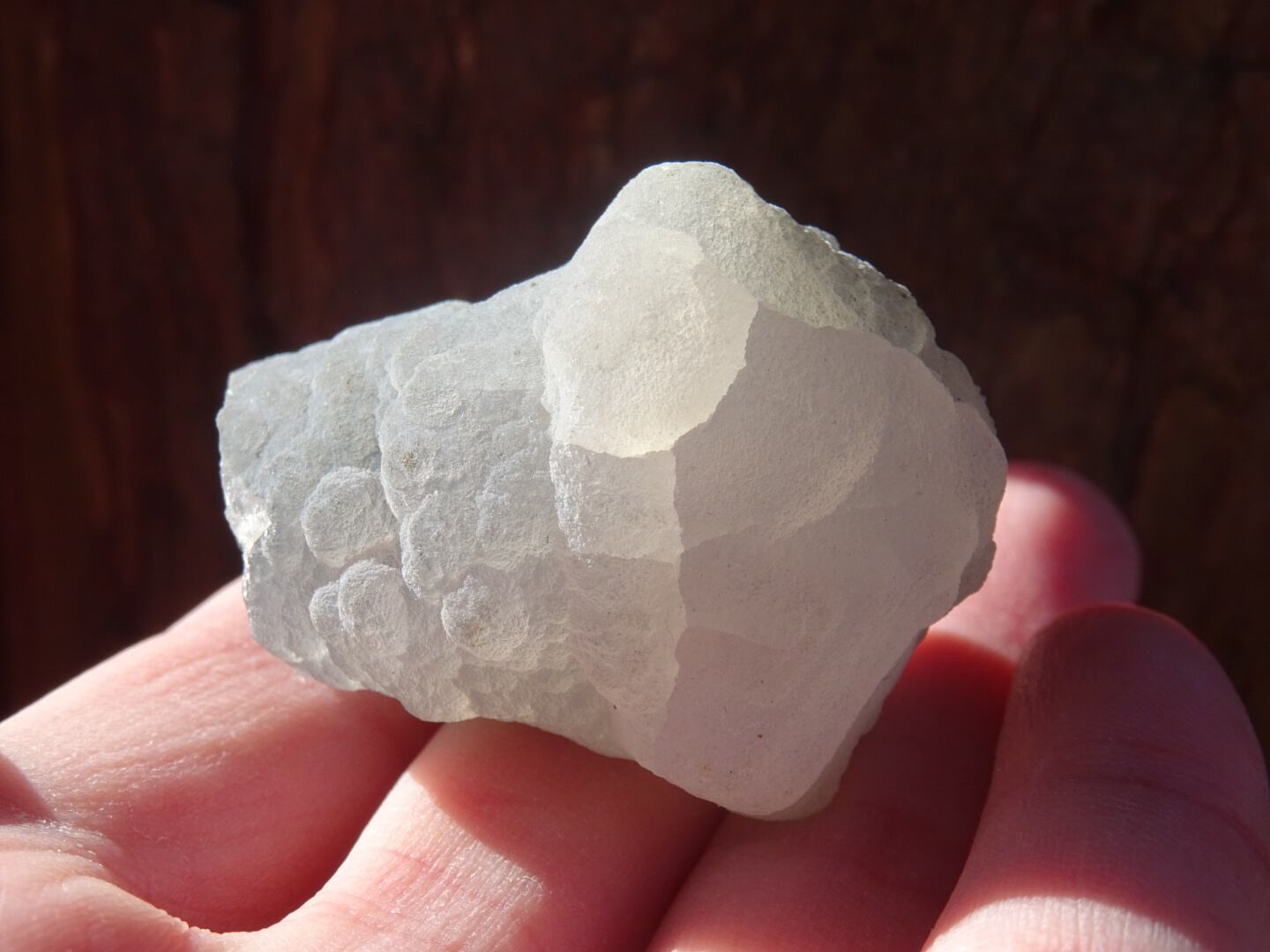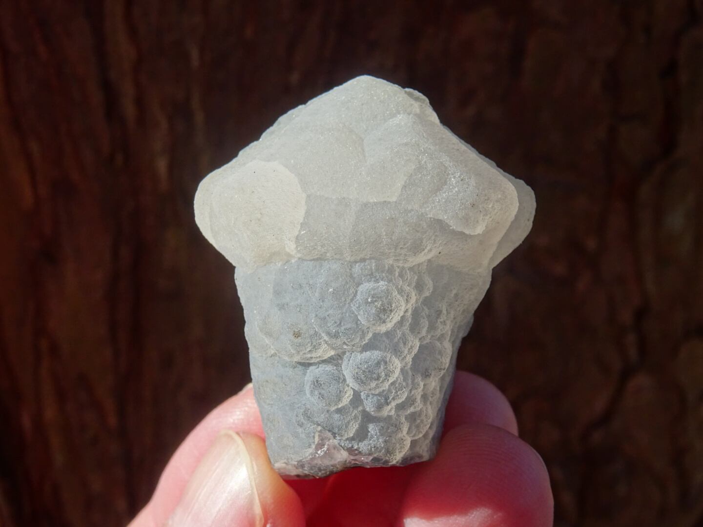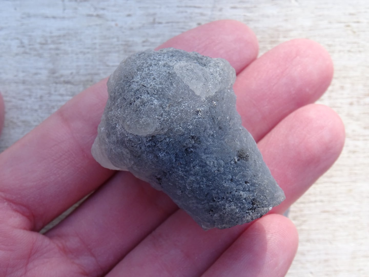 カルセドニーは微細なクォーツが寄り集まったものでさまざまなバリエーションがありますが…こちらはなんともユニークな姿で一目惚れ。