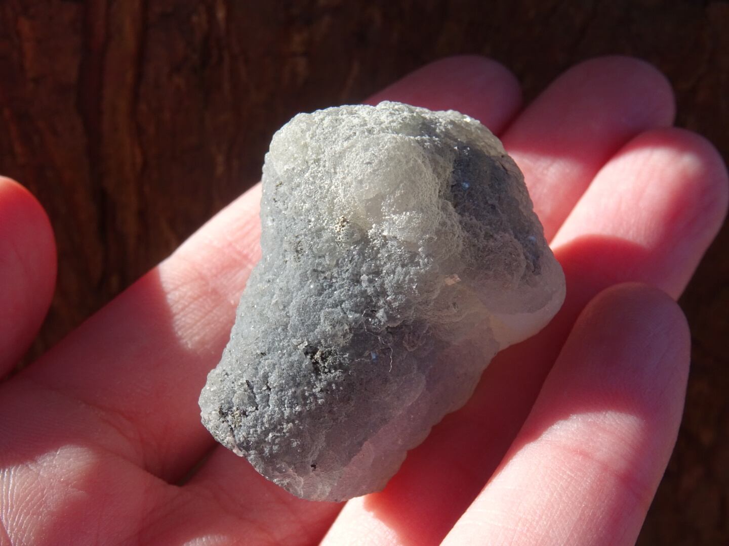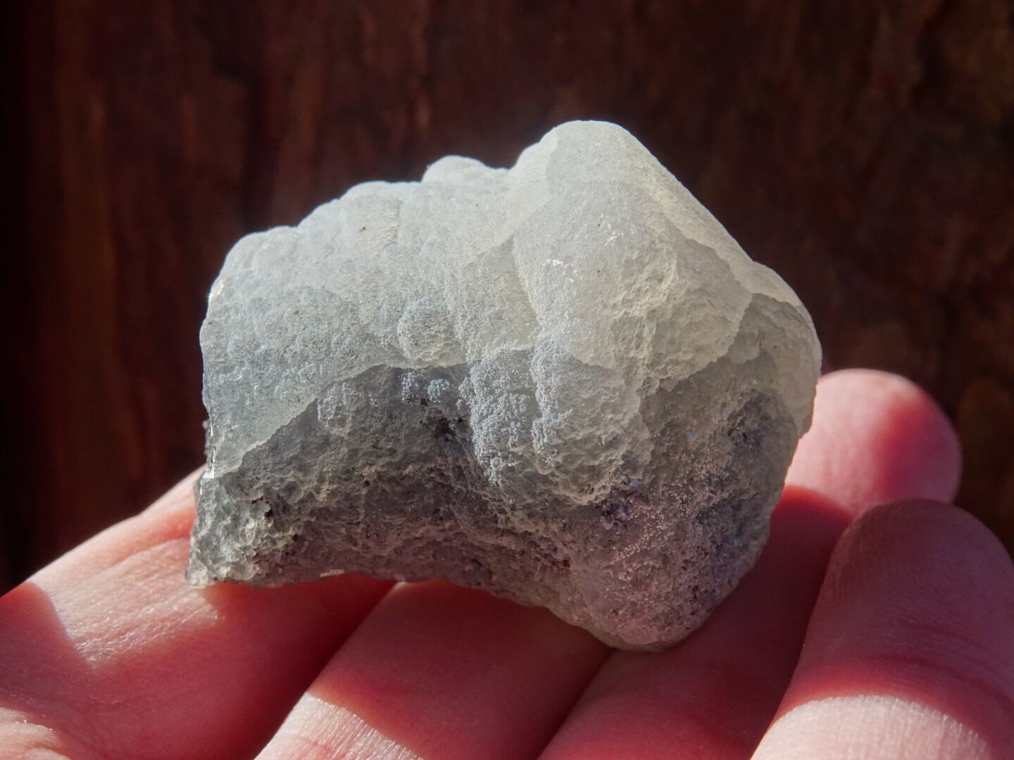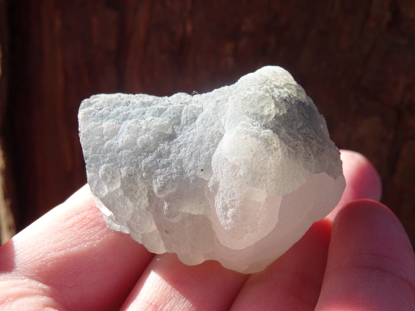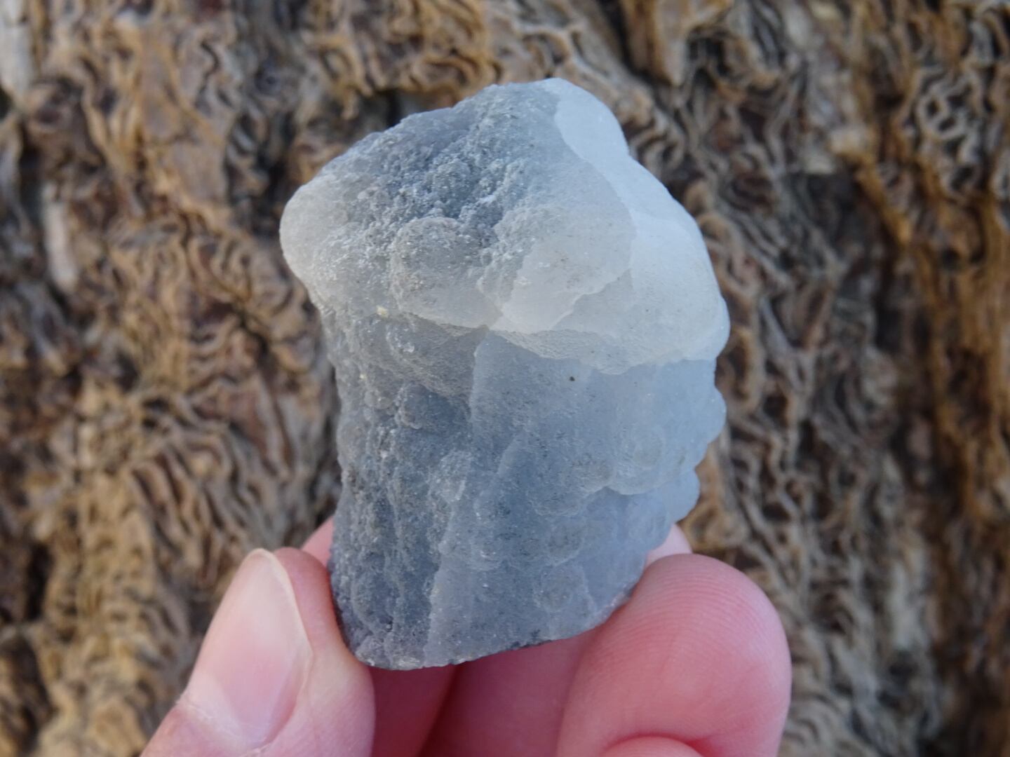 カルセドニーは微細なクォーツが寄り集まったものでさまざまなバリエーションがありますが…こちらはなんともユニークな姿で一目惚れ。