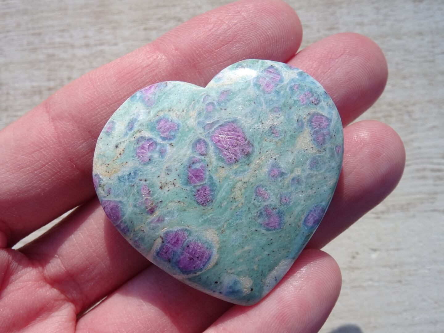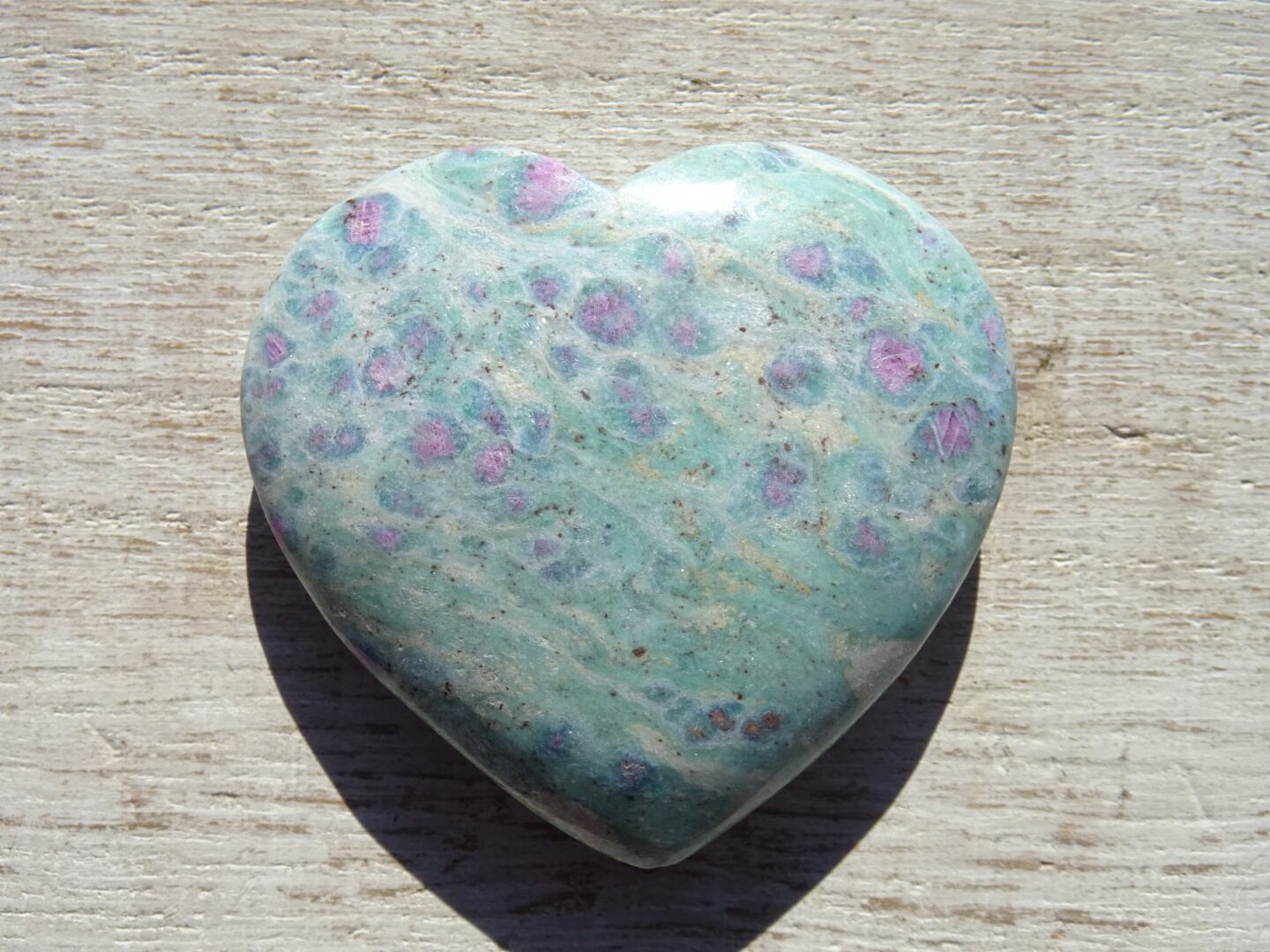 やさしいやさしい、夢見るようなグリーンのフックサイトの色合いを、お花のようなルビーがまるでデザインされたかのように彩っています。流れるような白い模様も素敵。