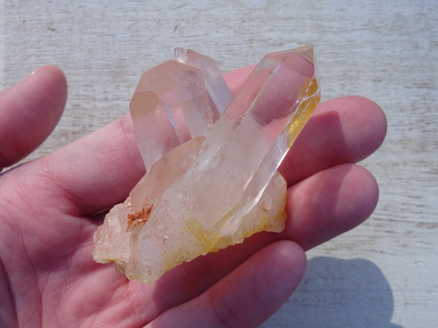 底面も小さな結晶たちが育っているのですが、そこもリモナイトでイエローになっているのもGood。