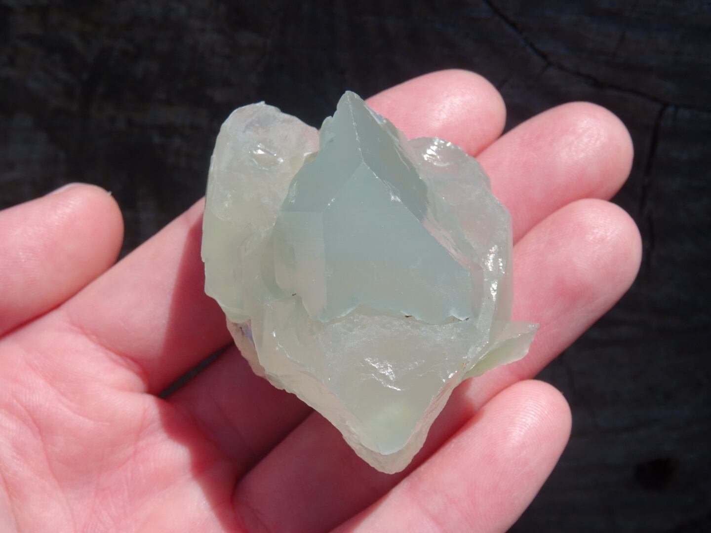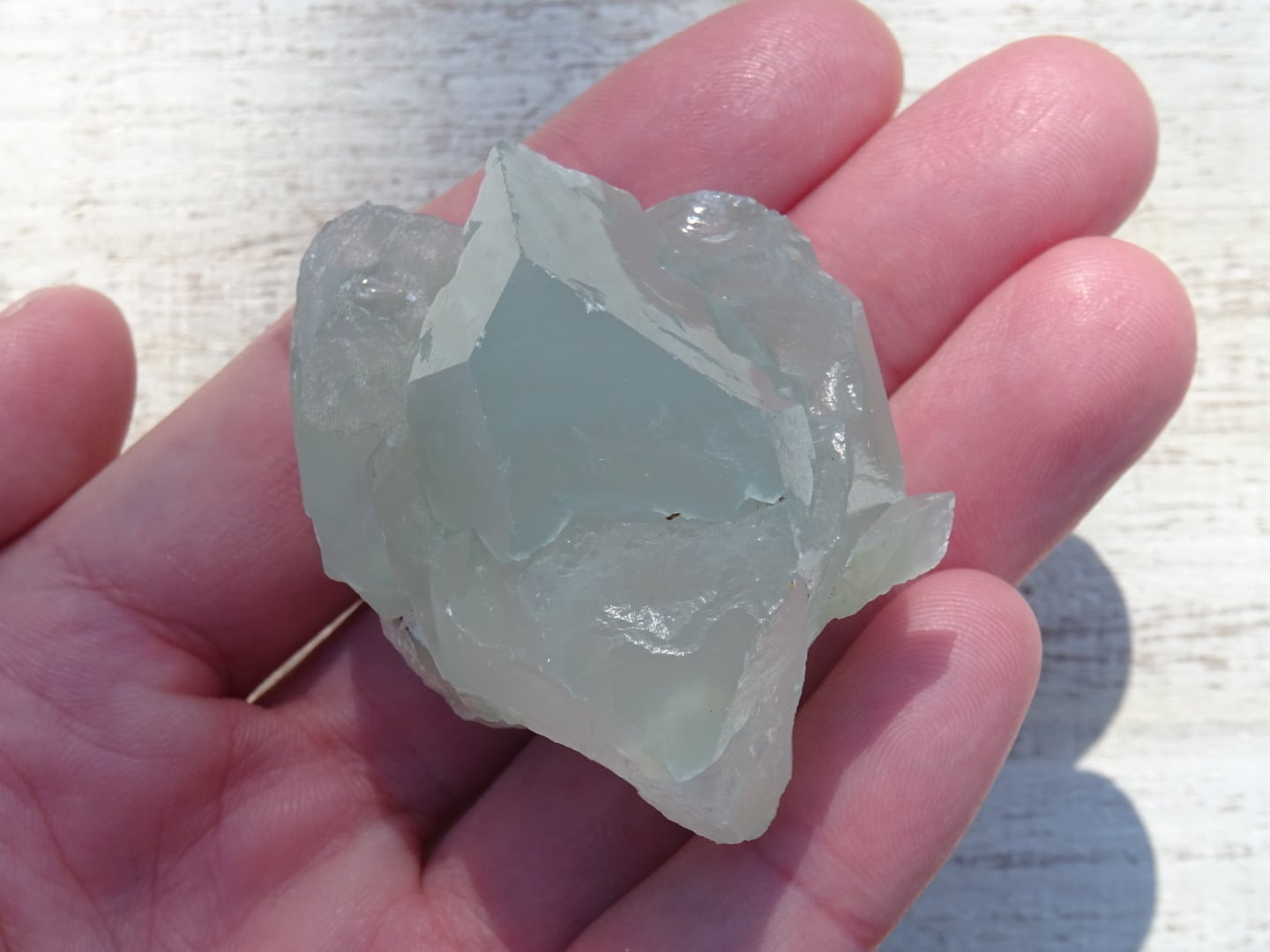 小さめサイズの方は幻想的なミルキーグリーン(光によっては青みがかって見えます)と透明感、ガラス質のフォルムが素敵。まるでジラソルのようなとても柔らかくミルキーなものをもっています。