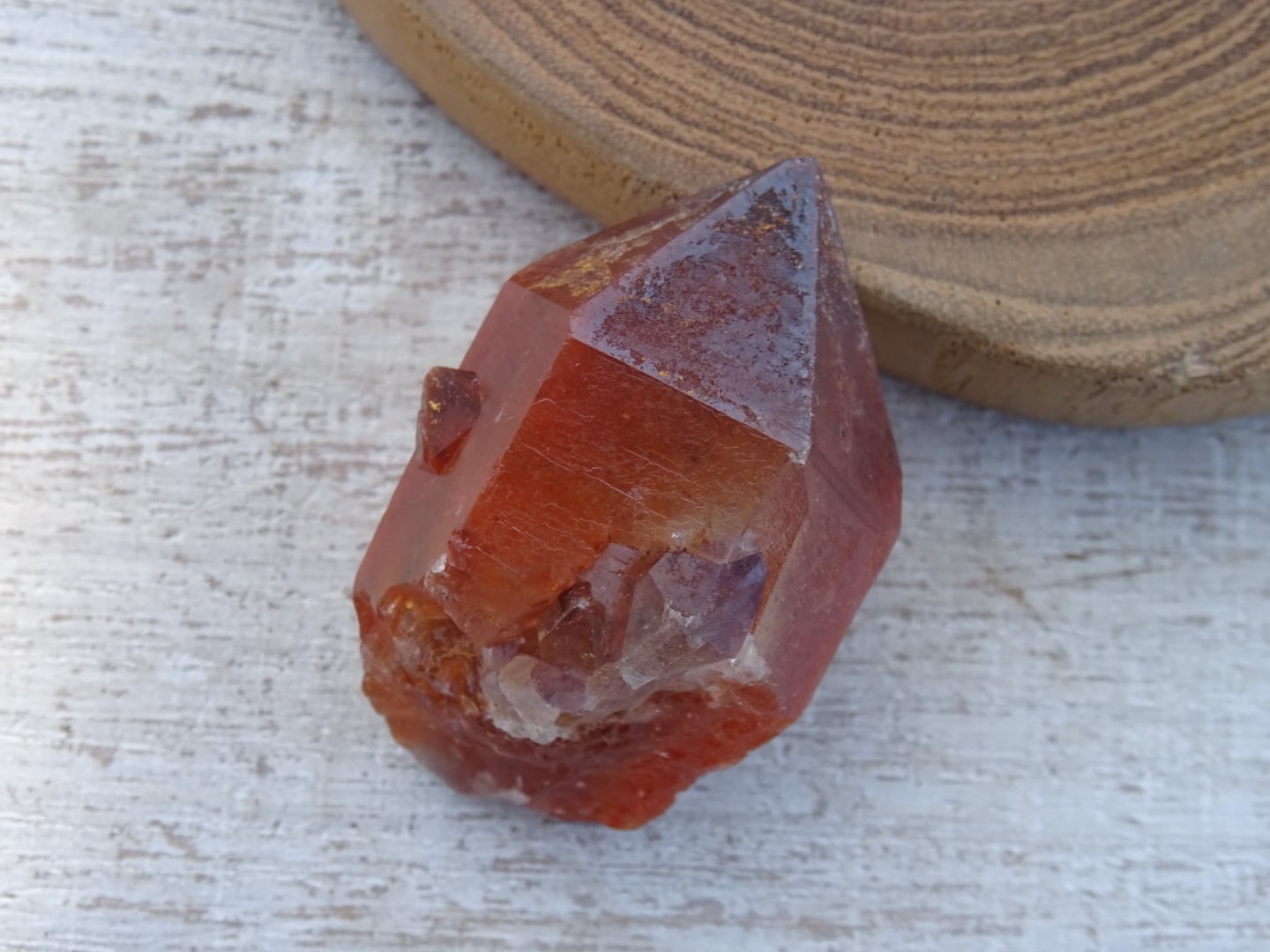 こちらは光にかざすと「朱色」とも言えそうな真赤な色合いを見せてくれるパワフル鉄分さんです(以前も書きましたが、カコクセナイトのみでこの色合いになるとは考えずらいのでおそらく鉄分も混ざっているのだと思われます)。