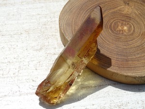 シトリンでダブルターミネーション、、というのも珍しいなと思うのですが(形状もとても綺麗)細長の石肌に反射するゴールドがかった光も、と~っても美しいです。